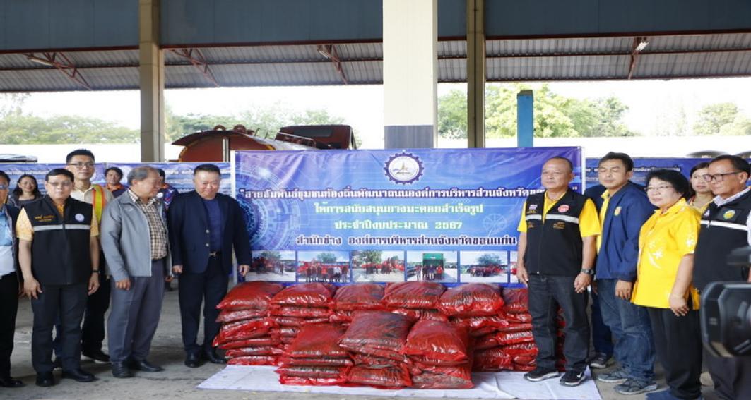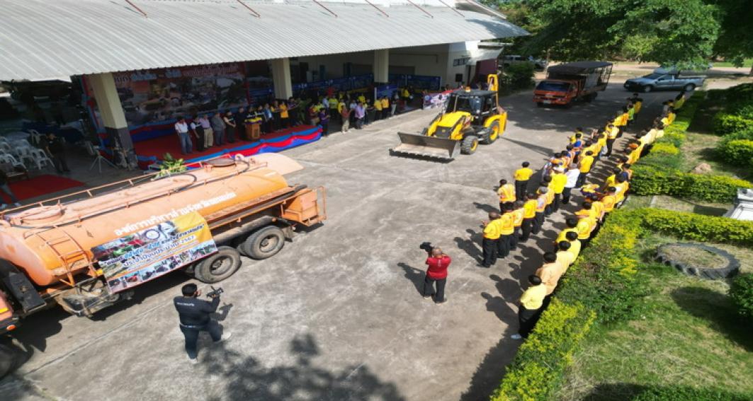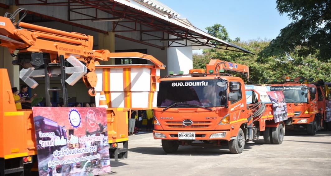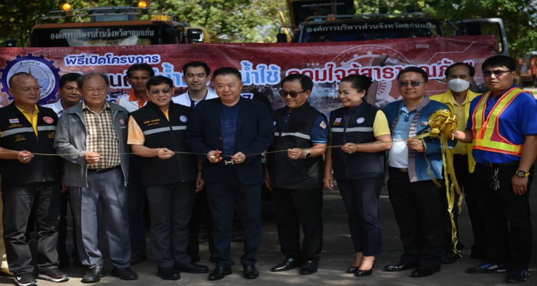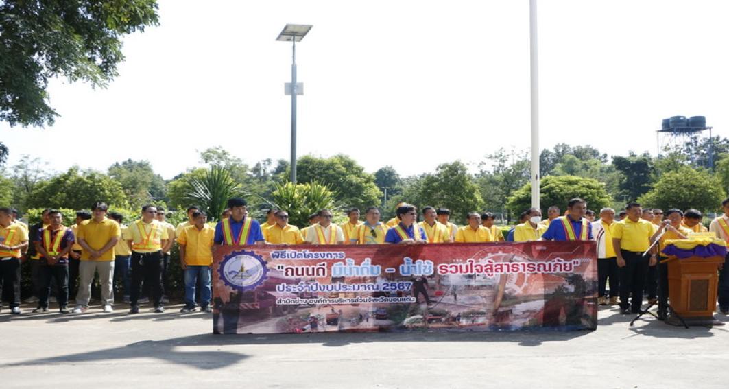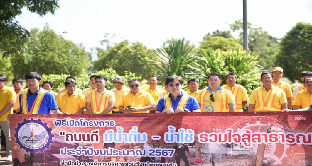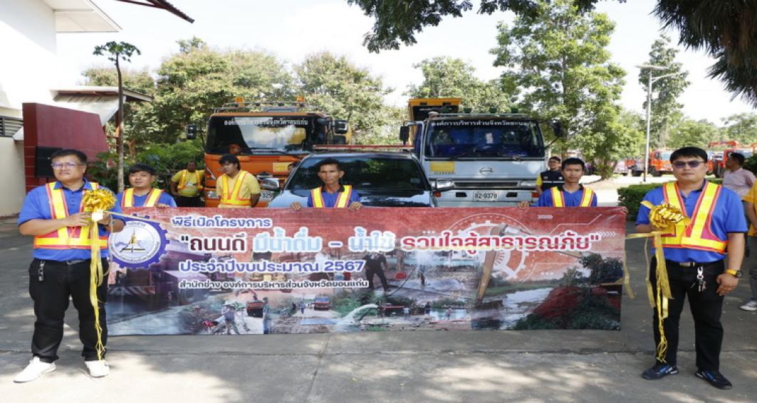"ถนนดีมีน้ำดื่ม - น้ำใช้ รวมใจสู้สาธารณภัย "ประจำปีงบประมาณ 2567 โดยมี นายสมถวิล น้อยวัน รักษาราชการแทนผู้อำนวยการสำนักช่าง กล่าวรายงาน ในโอกาสนี้มี นายธาดา พรหมสาขา ณ สกลนคร, นายประสิทธิ์ ทองแท่งไทย, ว่าที่ร้อยเอก พงเจตน์ พรกุณา ปลัดองค์การบริหารส่วนจังหวัดขอนแก่น, นายณณท์พัชธี กันตวธีระณัต ส.อบจ.ขอนแก่น อ.เมือง เขต 1, นายวุฒิพร ศรีมังกรแก้ว ส.อบจ.ขอนแก่น อ.เมือง เขต 2, นายสุรพล เชื้อชมกุล ส.อบจ.ขอนแก่น อ.เมือง เขต 3 ,นางกฤษณา ศิริพรรณ ส.อบจ.ขอนแก่น อ.บ้านไผ่ เขต 1 , นายจิตรายุทธ ฉัตรชัยพลรัตน์ ส.อบจ.ขอนแก่น อ.บ้านไผ่ เขต 2, นางปรียานุช ศรีภักดี ส.อบจ.ขอนแก่น เขต อ.บ้านฝาง พร้อมด้วยคณะผู้บริหารท้องถิ่น และคณะผู้บริหาร หัวหน้าส่วนราชการ พนักงาน องค์การบริหารส่วนจังหวัดขอนแก่นร่วมในพิธี ณ ศูนย์เครื่องจักรกล องค์การบริหารส่วนจังหวัดขอนแก่น ถนนเลี่ยงเมืองตำบลสำราญ อำเภอเมืองขอนแก่น จังหวัดขอนแก่น