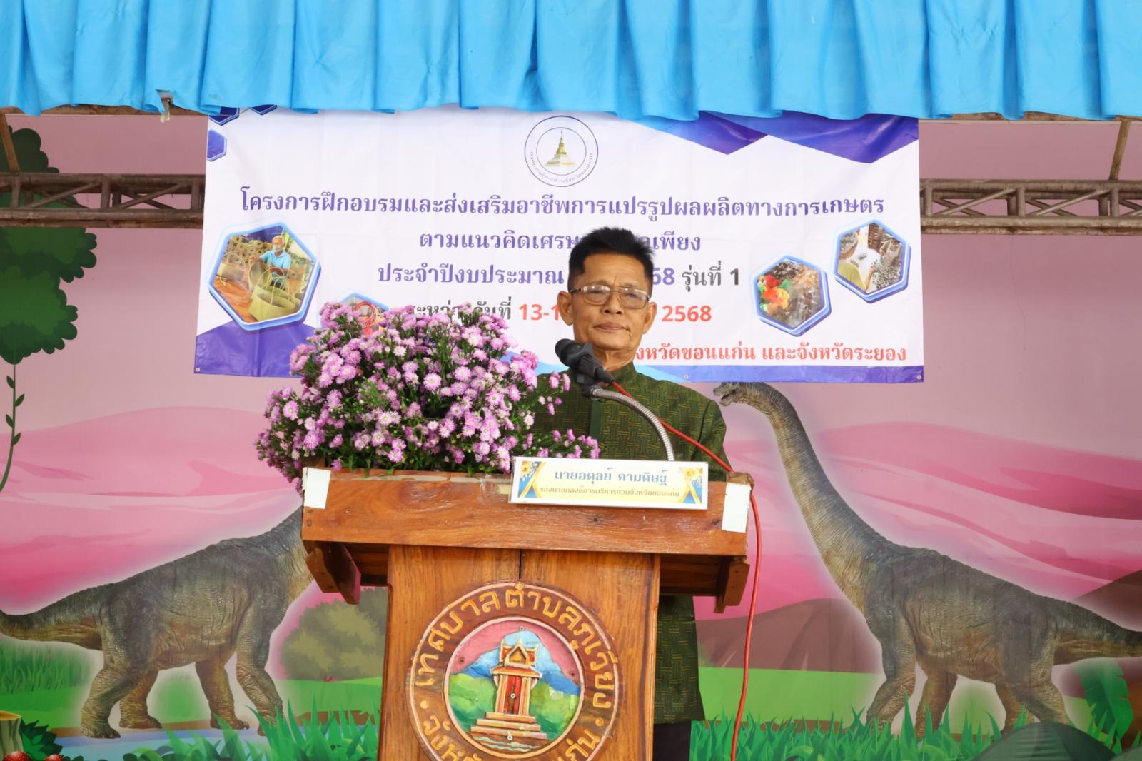 มอบหมายให้นายวิบูลย์ เรืองประเสริฐกุล ประธานสภาองค์การบริหารส่วนจังหวัดขอนแก่น เป็นประธานเปิดโครงการอบรมส่งเสริมอาชีพการแปรรูปผลผลิตทางการเกษตร ตามแนวคิดเศรษฐกิจพอเพียง ประจำปีงบประมาณ พ.ศ.2568 รุ่นที่ 2 ระหว่างวันที่ 27-29 สิงหาคม 2568 ณ หอประชุมเทศบาลตำบลภูเวียง
