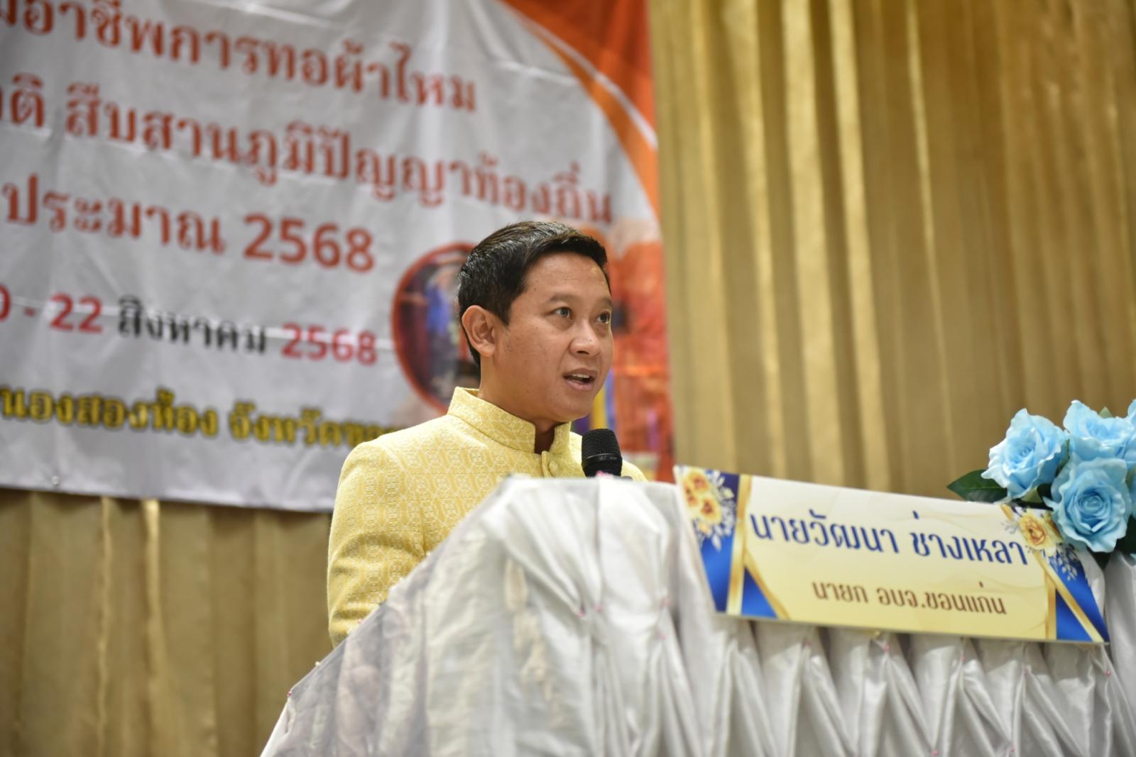 เมื่อวันที่ 20 สิงหาคม 2568 เวลา 09.30 น. นายวัฒนา ช่างเหลา นายกองค์การบริหารส่วนจังหวัดขอนแก่น เป็นประธาน โครงการส่งเสริมอาชีพการทอผ้าไหม ผ้ามัดหมี่ ย้อมสีธรรมชาติ สืบสานภูมิปัญญาท้องถิ่น ประจำปีงบประมาณ 2568 โดยมี นางศิริวรรณ สุรินทะ หัวหน้าสำนักปลัดองค์การบริหารส่วนจังหวัด กล่าวรายงาน ในโอกาสนี้ นางดวงแข อรรณนพพร นายอดุลย์ คามดิษฐ์ รองนายกองค์การบริหารส่วนจังหวัดขอนแก่น,  ดร.รัตนาภรณ์ สมบูณณ์ อดีตสมาชิกวุฒิสภาฯ, นางสาวกมลชนก ฉัตรชัยพลรัตน์ นายณัฐพล กลุ่มเหรียญทอง ส.อบจ.ขอนแก่น เขต 1,2 คณะผู้อำนวยการ รพ.สต. ผู้นำท้องที่ ผู้นำท้องถิ่น ในเขตพื้นที่อำเภอหนองสองห้อง เข้าร่วมเป็นเกียรติ ณ หอประชุมที่ว่าการอำเภอหนองสองห้อง