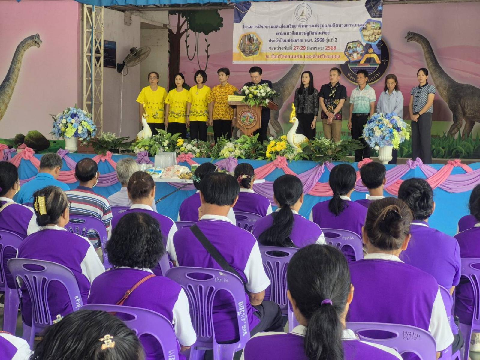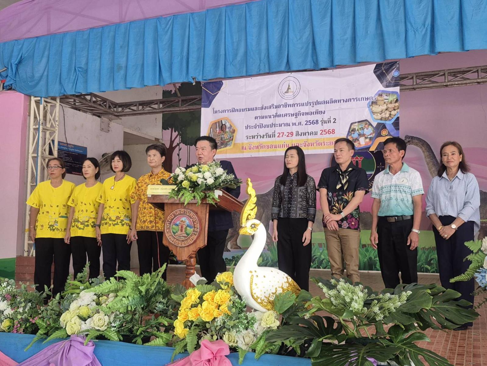 มอบหมายให้นายวิบูลย์ เรืองประเสริฐกุล ประธานสภาองค์การบริหารส่วนจังหวัดขอนแก่น เป็นประธานเปิดโครงการอบรมส่งเสริมอาชีพการแปรรูปผลผลิตทางการเกษตร ตามแนวคิดเศรษฐกิจพอเพียง ประจำปีงบประมาณ พ.ศ.2568 รุ่นที่ 2 ระหว่างวันที่ 27-29 สิงหาคม 2568 ณ หอประชุมเทศบาลตำบลภูเวียง