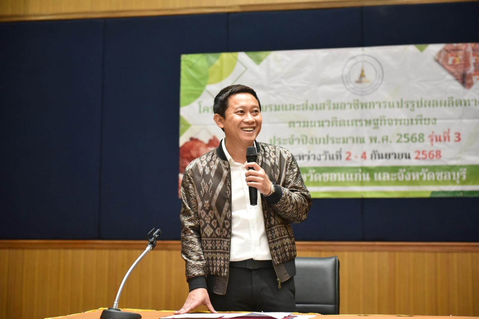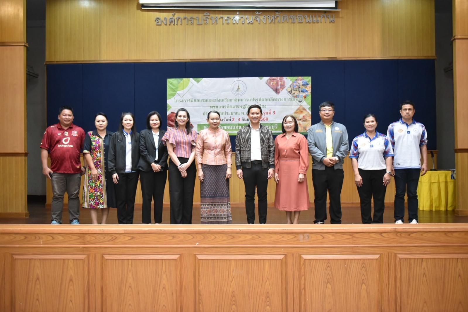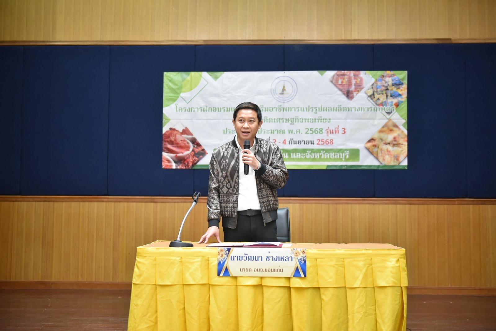 องค์การบริหารส่วนจังหวัดขอนแก่นจัดโครงการฝึกอบรมและส่งเสริมอาชีพการแปรรูปผลผลิตทางการเกษตร ตามแนวคิดเศรษฐกิจพอเพียง รุ่นที่ 3 เมื่อวันที่ 2 กันยายน 2568 นายวัฒนา ช่างเหลา นายกองค์การบริหารส่วนจังหวัดขอนแก่น เป็นประธานในพิธีเปิดโครงการฝึกอบรมและส่งเสริมอาชีพการแปรรูปผลผลิตทางการเกษตร ตามแนวคิดเศรษฐกิจพอเพียง ประจำปีงบประมาณ พ.ศ. 2568 รุ่นที่ 3 โดยมี นางสาวศิริวรรณ สุรินทะ หัวหน้าสำนักปลัดองค์การบริหารส่วนจังหวัด กล่าวรายงาน ซึ่งได้รับเกียรติจาก นางจิรภา เชื้อดวงผุย พัฒนาการจังหวัดขอนแก่น เป็นวิทยากร ในโอกาสนี้มี นางสาวนิศากร ดอนกระสินธุ์ ผู้อำนวยการกองสาธารณสุข, นางทิพานัน นามวิจิตร เลขานุการองค์การบริหารส่วนจังหวัด หัวหน้าส่วนราชการ อบจ. ขอนแก่น เข้าร่วมเป็นเกียรติในพิธี ณ ศาลาประชาคมองค์การบริหารส่วนจังหวัดขอนแก่น อ.เมืองขอนแก่น จ.ขอนแก่น