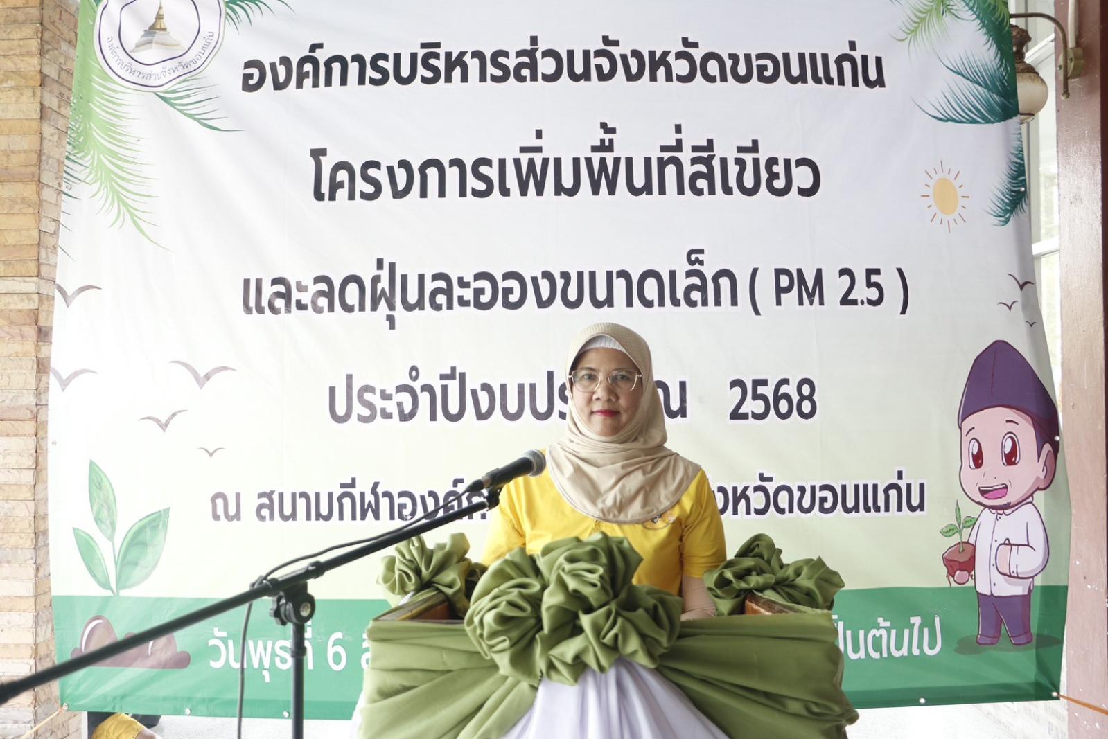 เมื่อวันที่ 6 สิงหาคม 2568 เวลา 14.00น. องค์การบริหารส่วนจังหวัดขอนแก่น นำโดย นายวัฒนา ช่างเหลา นายกองค์การบริหารส่วนจังหวัดขอนแก่นฃมอบหมายให้ นางอาซีซะห์ ว่องไว รองปลัดองค์การบริหารส่วนจังหวัดขอนแก่นเป็นประธานในพิธีเปิดโครงการเพิ่มพื้นที่สีเขียวและลดฝุ่นละอองขนาดเล็ก (PM 2.5) ประจำปีงบประมาณ 2568 ในโอกาสนี้มี หัวหน้าส่วนราชการ พนักงาน อบจ.ขอนแก่น เข้าร่วม ณ สนามกีฬากลางจังหวัดขอนแก่น อำเภอเมือง จังหวัดขอนแก่น