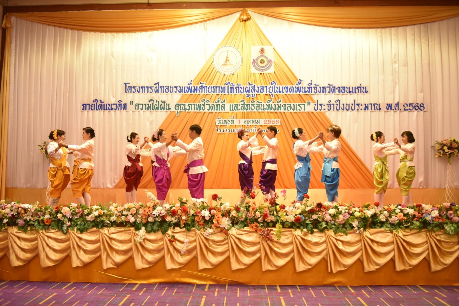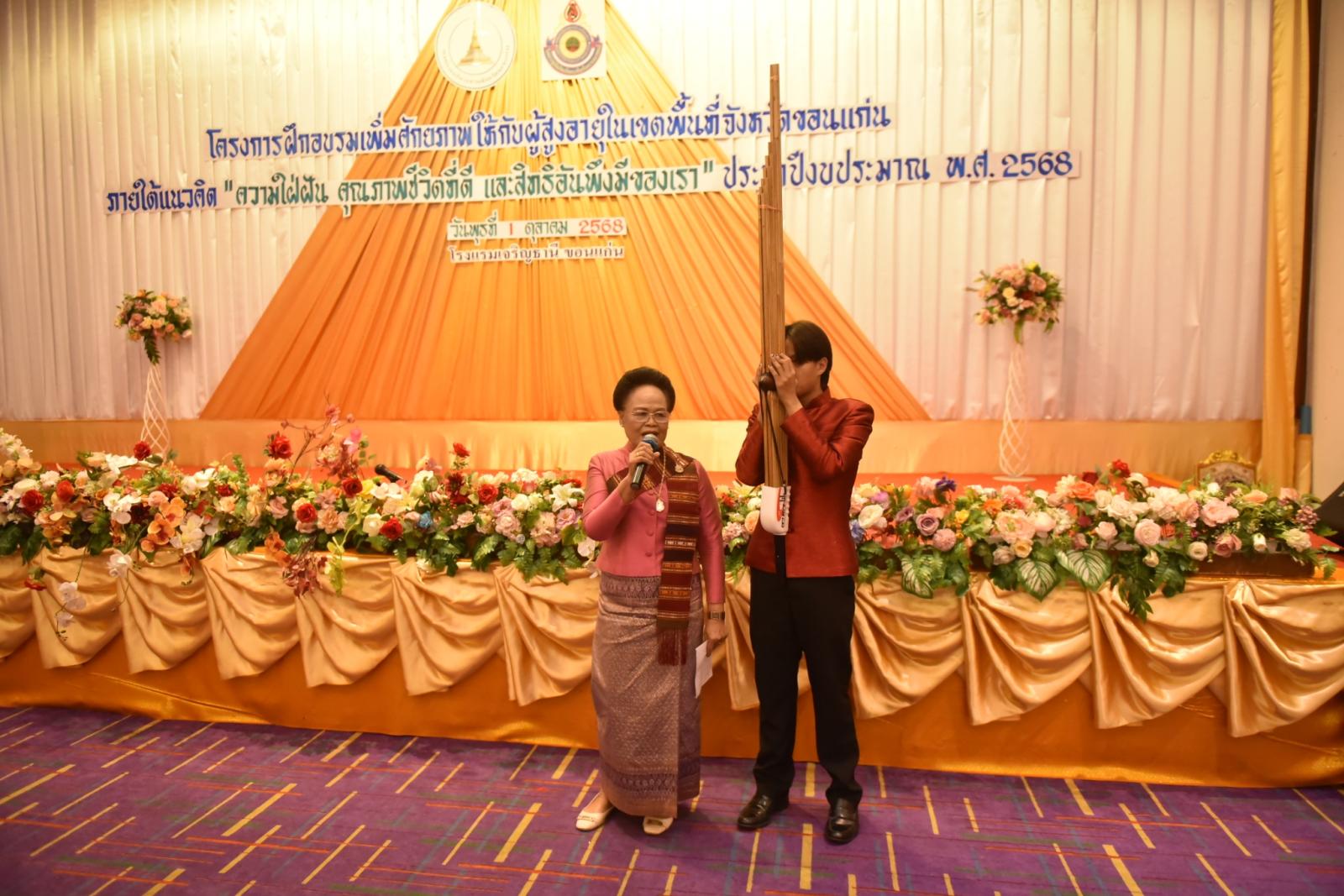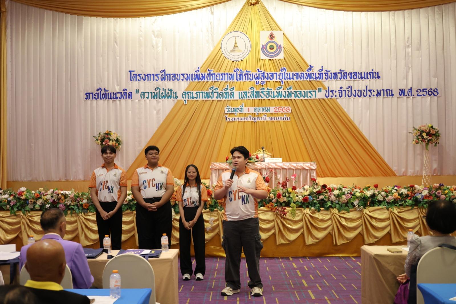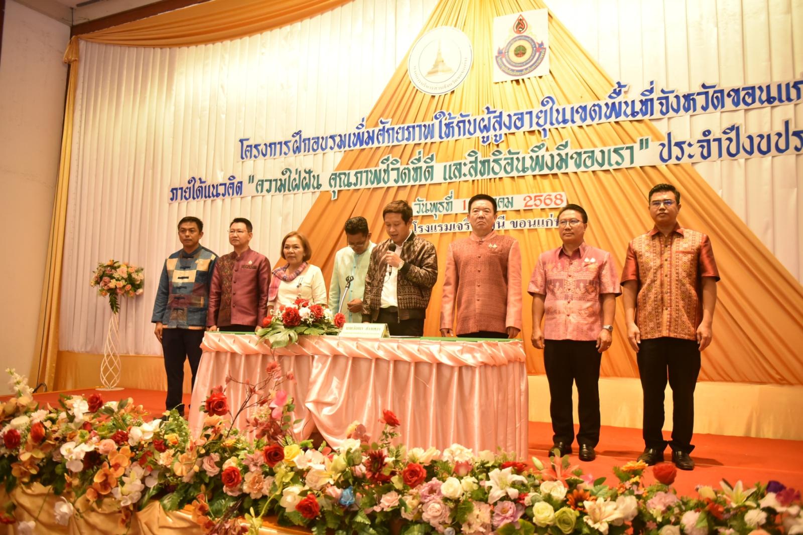 องค์การบริหารส่วนจังหวัดขอนแก่น ร่วมกับ สมาคมสภาผู้สูงอายุแห่งประเทศไทยในพระราชูปถัมภ์สมเด็จพระศรีนครินทราบรมราชชนนีประจำจังหวัดขอนแก่น จัด โครงการอบรมเพิ่มศักยภาพให้แก่ผู้สูงอายุในเขตพื้นที่จังหวัดขอนแก่น ประจำปีงบประมาณ พ.ศ. 2568 ภายใต้แนวคิด "ความใฝ่ฝัน คุณภาพชีวิตที่ดี และสิทธิอันพึงมีของเรา" เมื่อวันที่ 1 ตุลาคม 2568 ณ โรงแรมเจริญธานีขอนแก่น จังหวัดขอนแก่น เพื่อยกย่องคุณค่าและพัฒนาศักยภาพผู้สูงอายุให้มีความเข้มแข็งทั้งร่างกายและจิตใจ