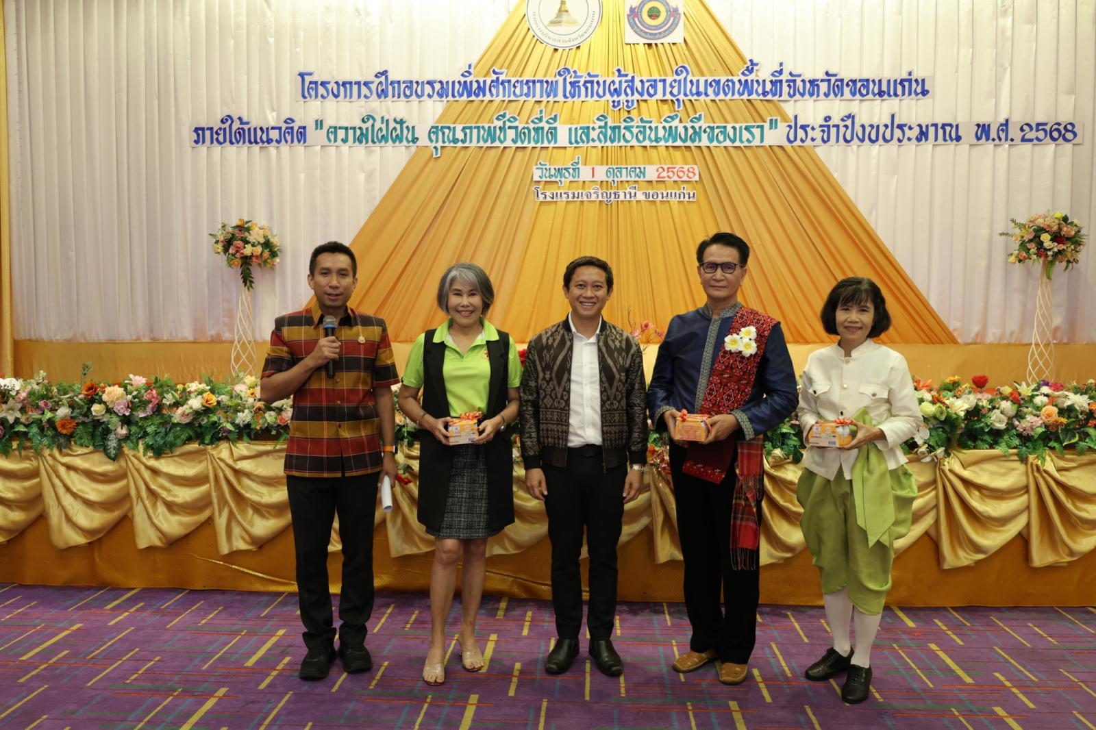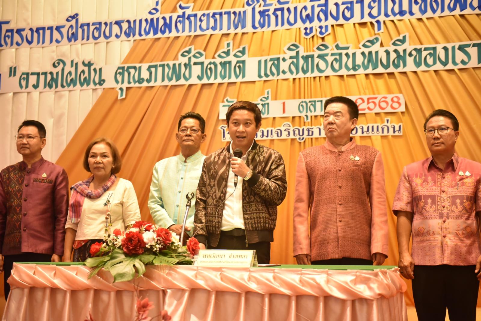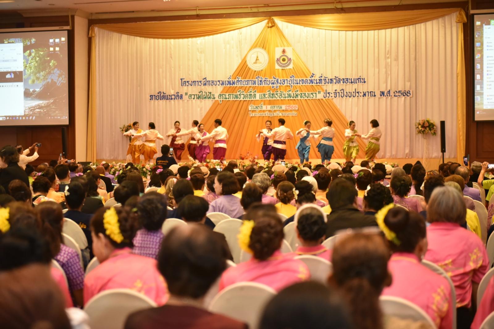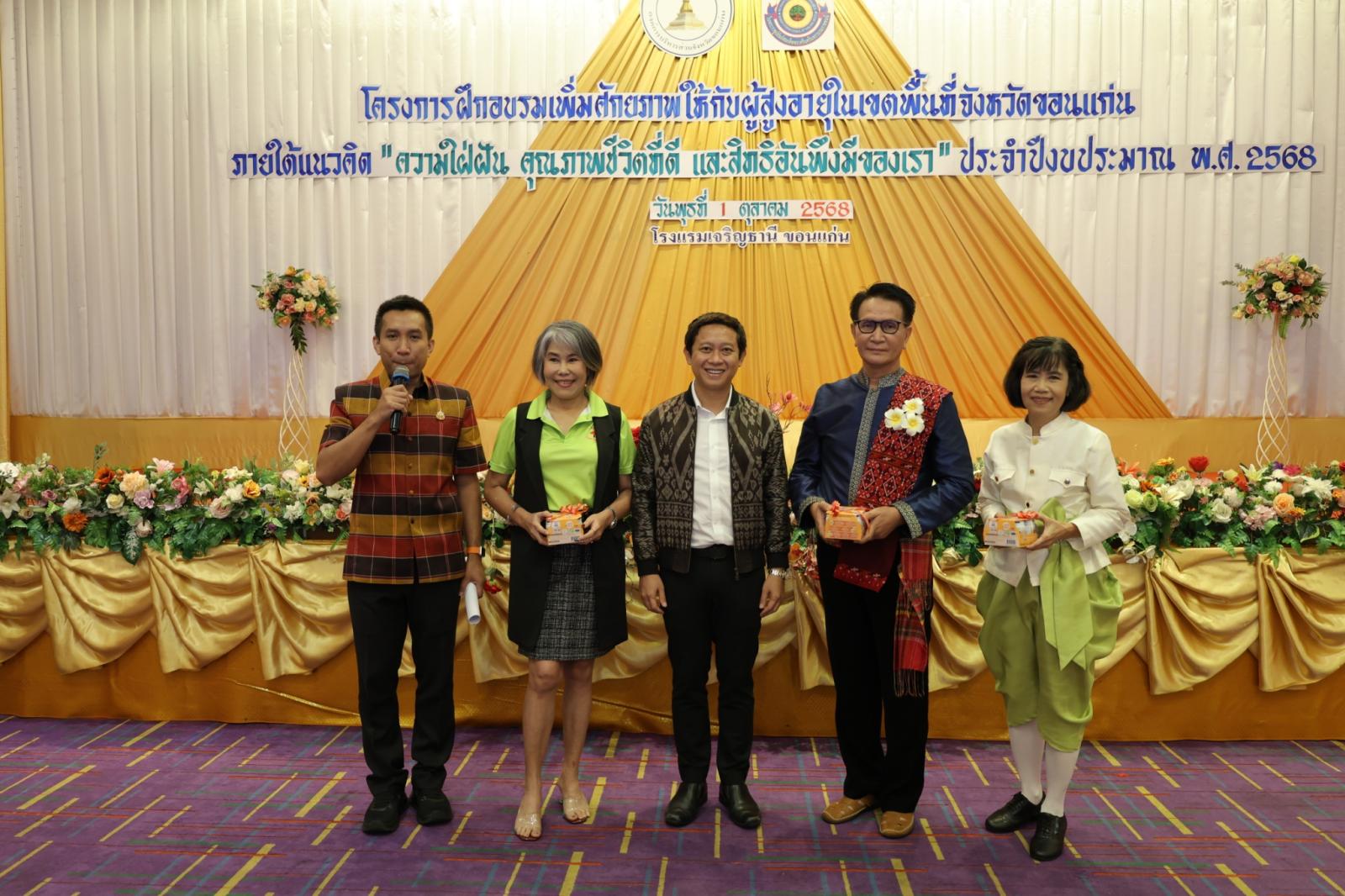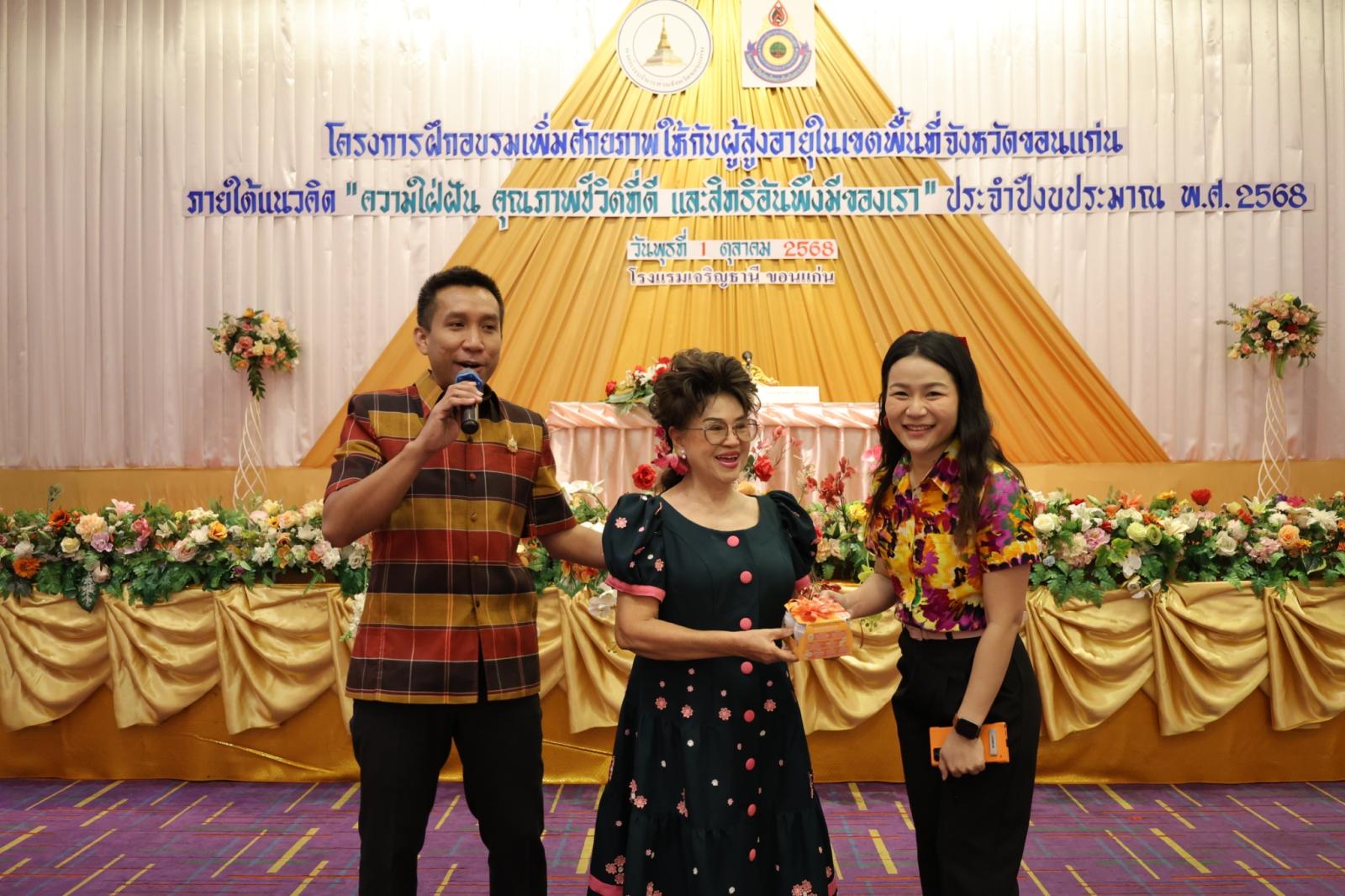 องค์การบริหารส่วนจังหวัดขอนแก่น ร่วมกับ สมาคมสภาผู้สูงอายุแห่งประเทศไทยในพระราชูปถัมภ์สมเด็จพระศรีนครินทราบรมราชชนนีประจำจังหวัดขอนแก่น จัด โครงการอบรมเพิ่มศักยภาพให้แก่ผู้สูงอายุในเขตพื้นที่จังหวัดขอนแก่น ประจำปีงบประมาณ พ.ศ. 2568 ภายใต้แนวคิด "ความใฝ่ฝัน คุณภาพชีวิตที่ดี และสิทธิอันพึงมีของเรา" เมื่อวันที่ 1 ตุลาคม 2568 ณ โรงแรมเจริญธานีขอนแก่น จังหวัดขอนแก่น เพื่อยกย่องคุณค่าและพัฒนาศักยภาพผู้สูงอายุให้มีความเข้มแข็งทั้งร่างกายและจิตใจ