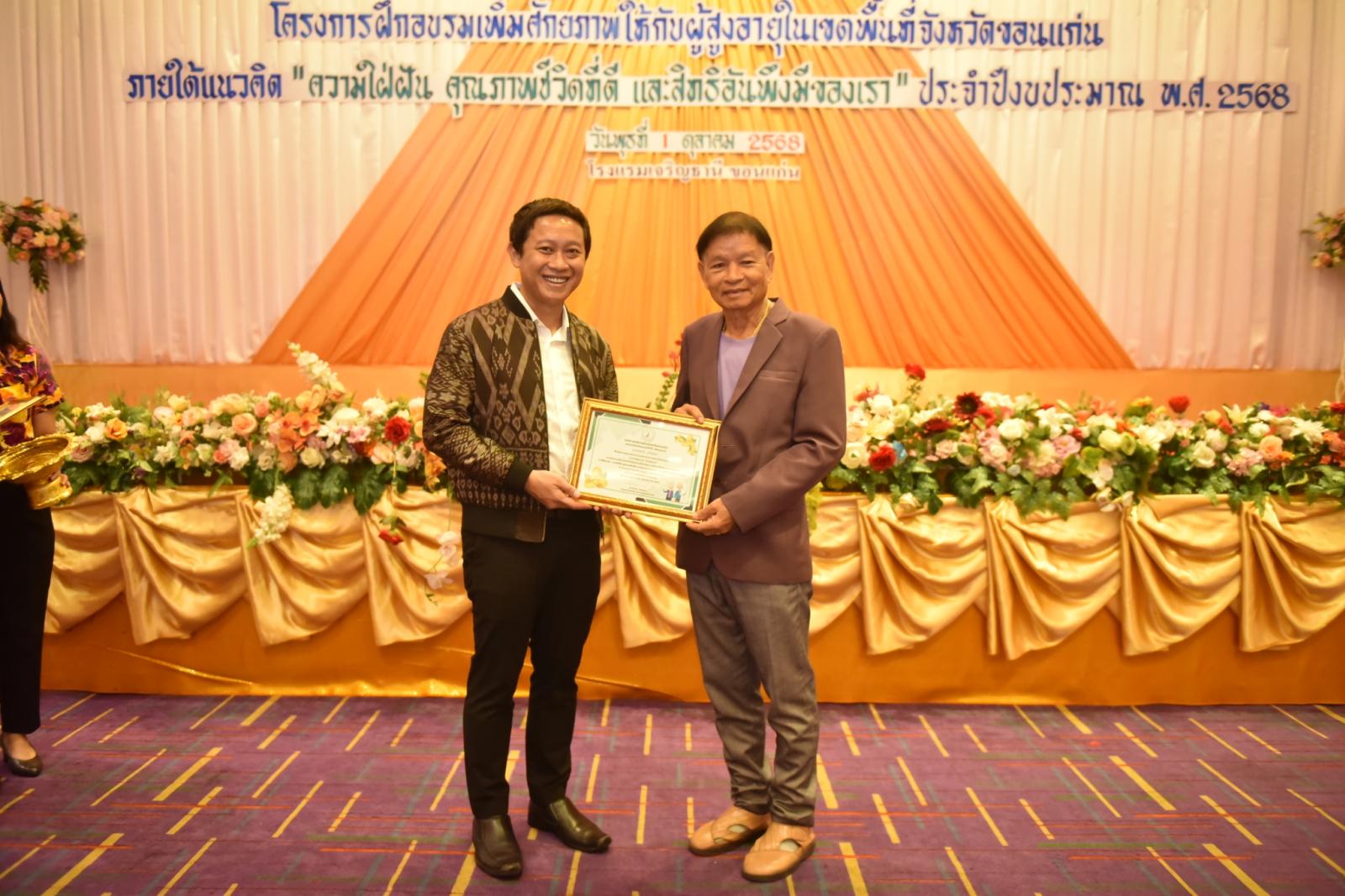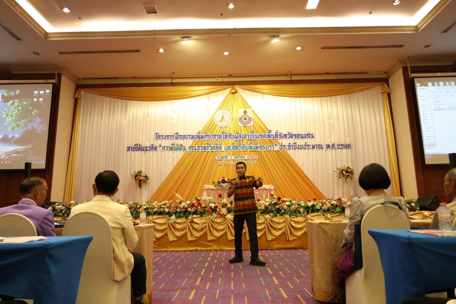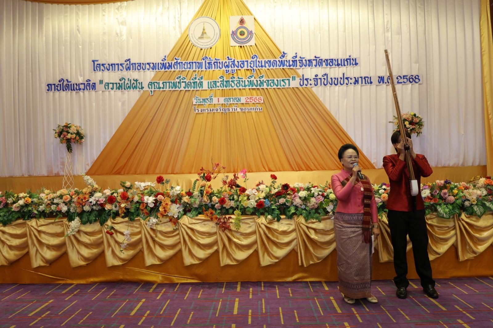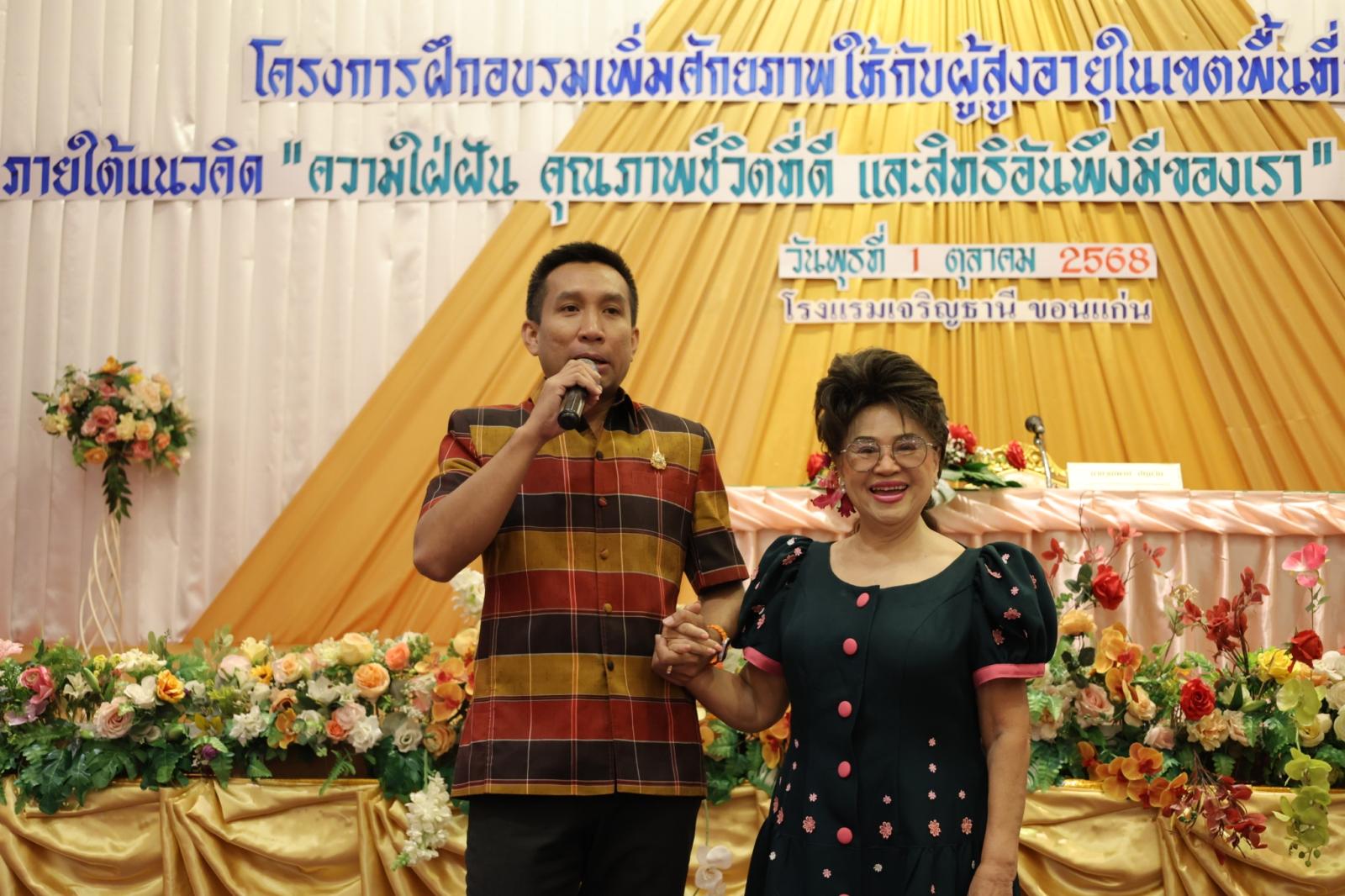 องค์การบริหารส่วนจังหวัดขอนแก่น ร่วมกับ สมาคมสภาผู้สูงอายุแห่งประเทศไทยในพระราชูปถัมภ์สมเด็จพระศรีนครินทราบรมราชชนนีประจำจังหวัดขอนแก่น จัด โครงการอบรมเพิ่มศักยภาพให้แก่ผู้สูงอายุในเขตพื้นที่จังหวัดขอนแก่น ประจำปีงบประมาณ พ.ศ. 2568 ภายใต้แนวคิด "ความใฝ่ฝัน คุณภาพชีวิตที่ดี และสิทธิอันพึงมีของเรา" เมื่อวันที่ 1 ตุลาคม 2568 ณ โรงแรมเจริญธานีขอนแก่น จังหวัดขอนแก่น เพื่อยกย่องคุณค่าและพัฒนาศักยภาพผู้สูงอายุให้มีความเข้มแข็งทั้งร่างกายและจิตใจ