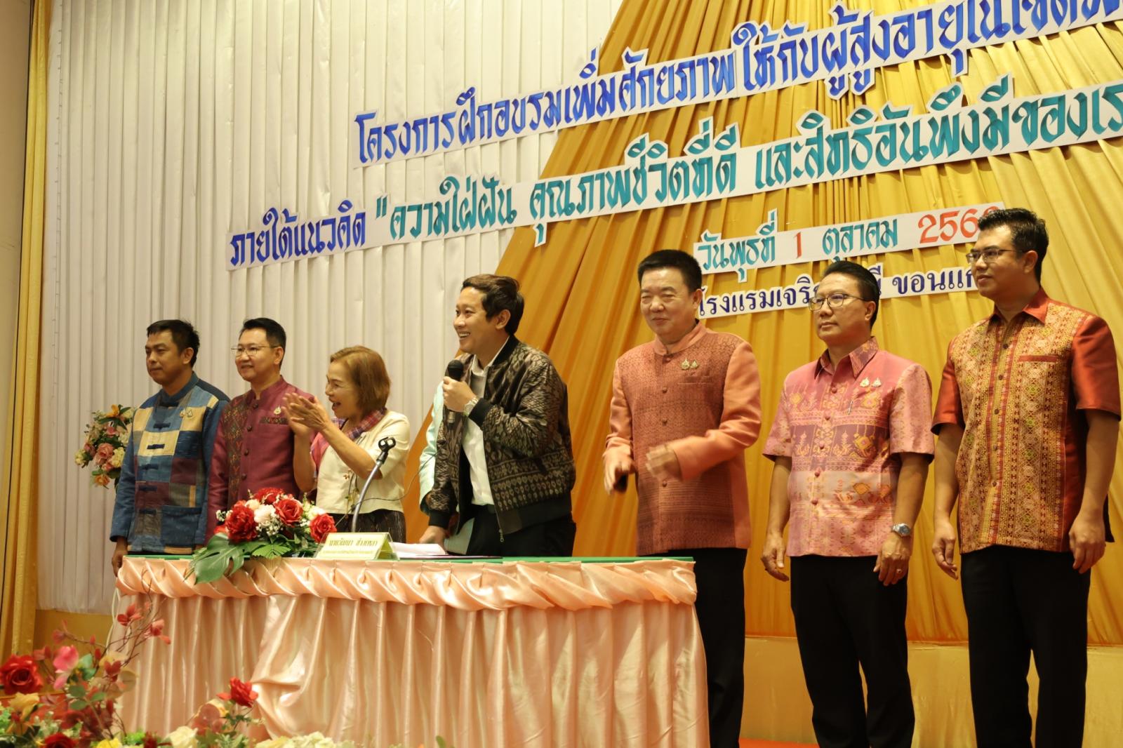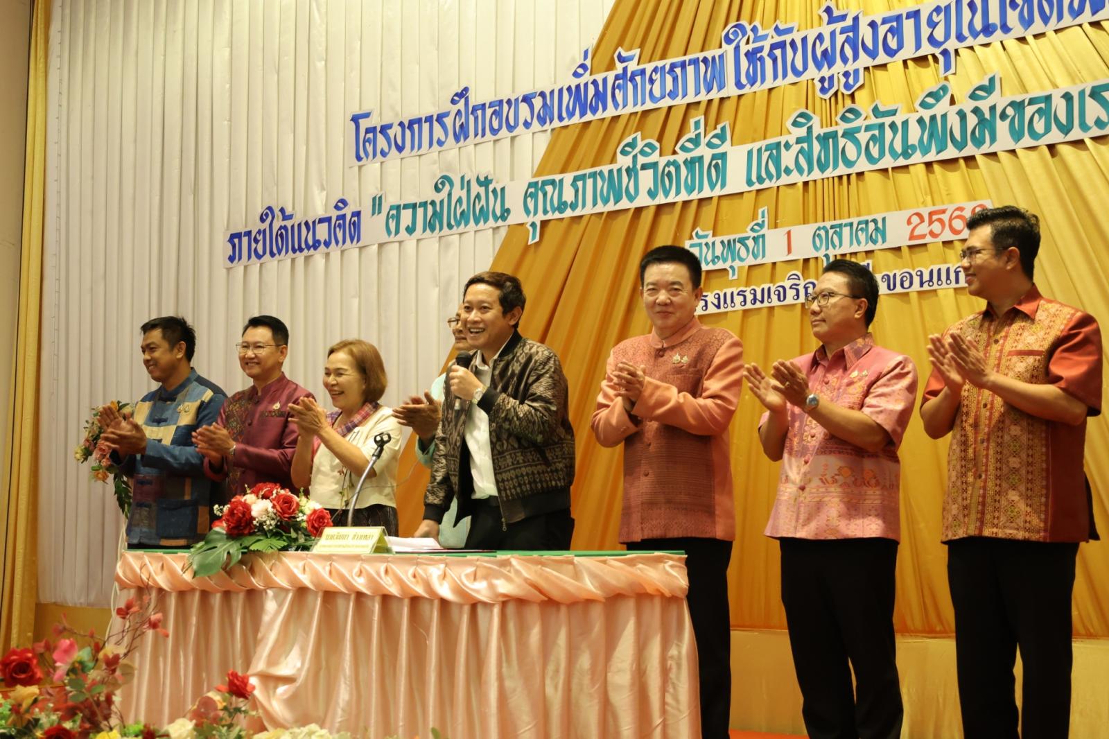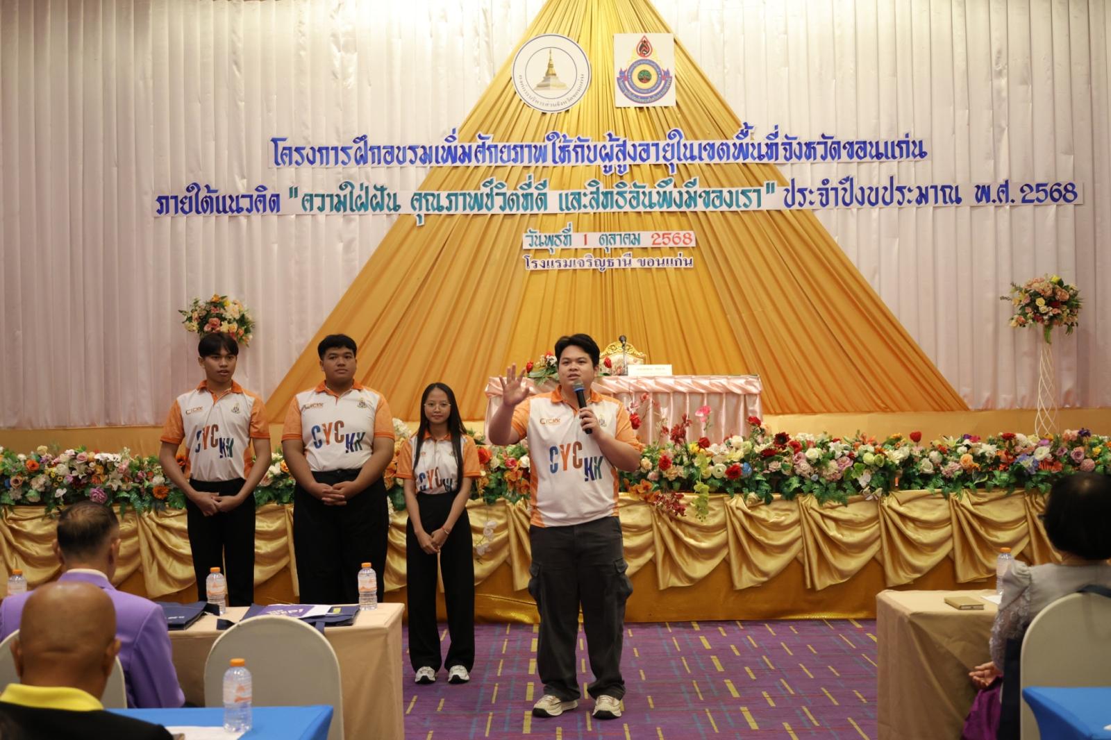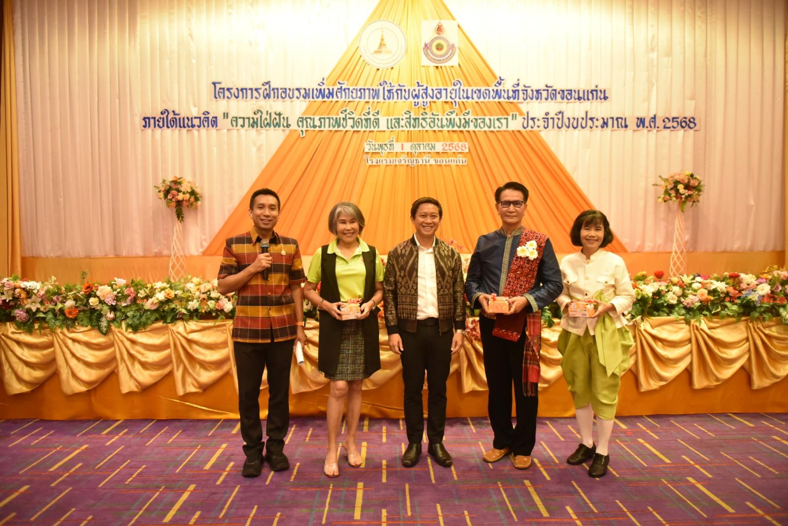 องค์การบริหารส่วนจังหวัดขอนแก่น ร่วมกับ สมาคมสภาผู้สูงอายุแห่งประเทศไทยในพระราชูปถัมภ์สมเด็จพระศรีนครินทราบรมราชชนนีประจำจังหวัดขอนแก่น จัด โครงการอบรมเพิ่มศักยภาพให้แก่ผู้สูงอายุในเขตพื้นที่จังหวัดขอนแก่น ประจำปีงบประมาณ พ.ศ. 2568 ภายใต้แนวคิด "ความใฝ่ฝัน คุณภาพชีวิตที่ดี และสิทธิอันพึงมีของเรา" เมื่อวันที่ 1 ตุลาคม 2568 ณ โรงแรมเจริญธานีขอนแก่น จังหวัดขอนแก่น เพื่อยกย่องคุณค่าและพัฒนาศักยภาพผู้สูงอายุให้มีความเข้มแข็งทั้งร่างกายและจิตใจ