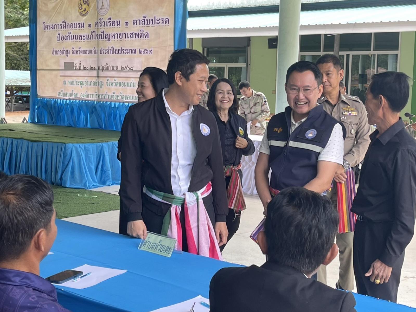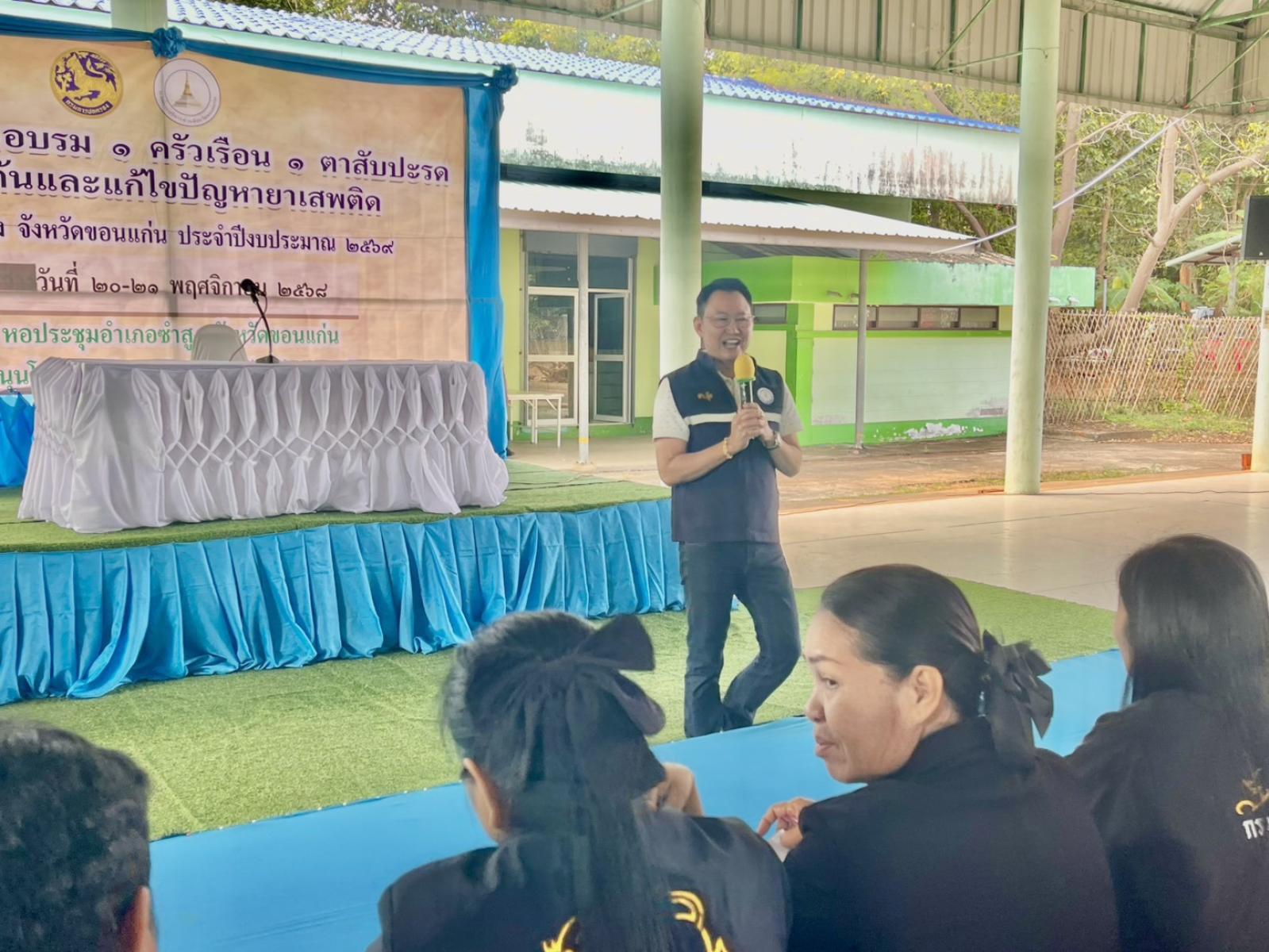 วันพฤหัสบดีที่ 20 พฤศจิกายน 2568 ฝ่ายอำนวยการ ออกตรวจติดตามการดำเนินโครงการของหน่วยงานที่ขอรับเงินอุดหนุนของ อบจ.ขอนแก่น ที่ให้การสนับสนุนงบประมาณให้ที่ทำการปกครองอำเภอซำสูง โครงการฝึกอบรม 1 ครัวเรือน 1 ตาสับปะรด ป้องกันและแก้ไขปัญหายาเสพติดอำเภอซำสูง ประจำปีงบประมาณ พ.ศ.2569 จำนวน 350,000 บาท ณ หอประชุมอำเภอซำสูง จังหวัดขอนแก่น โดยมีกลุ่มเป้าหมายทั้งสิ้น 350 คน