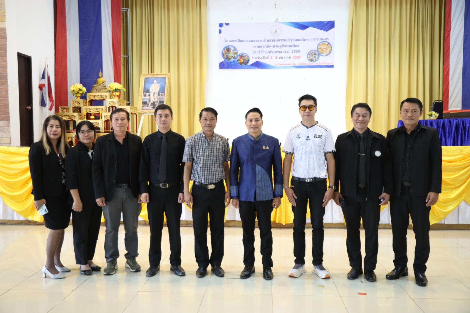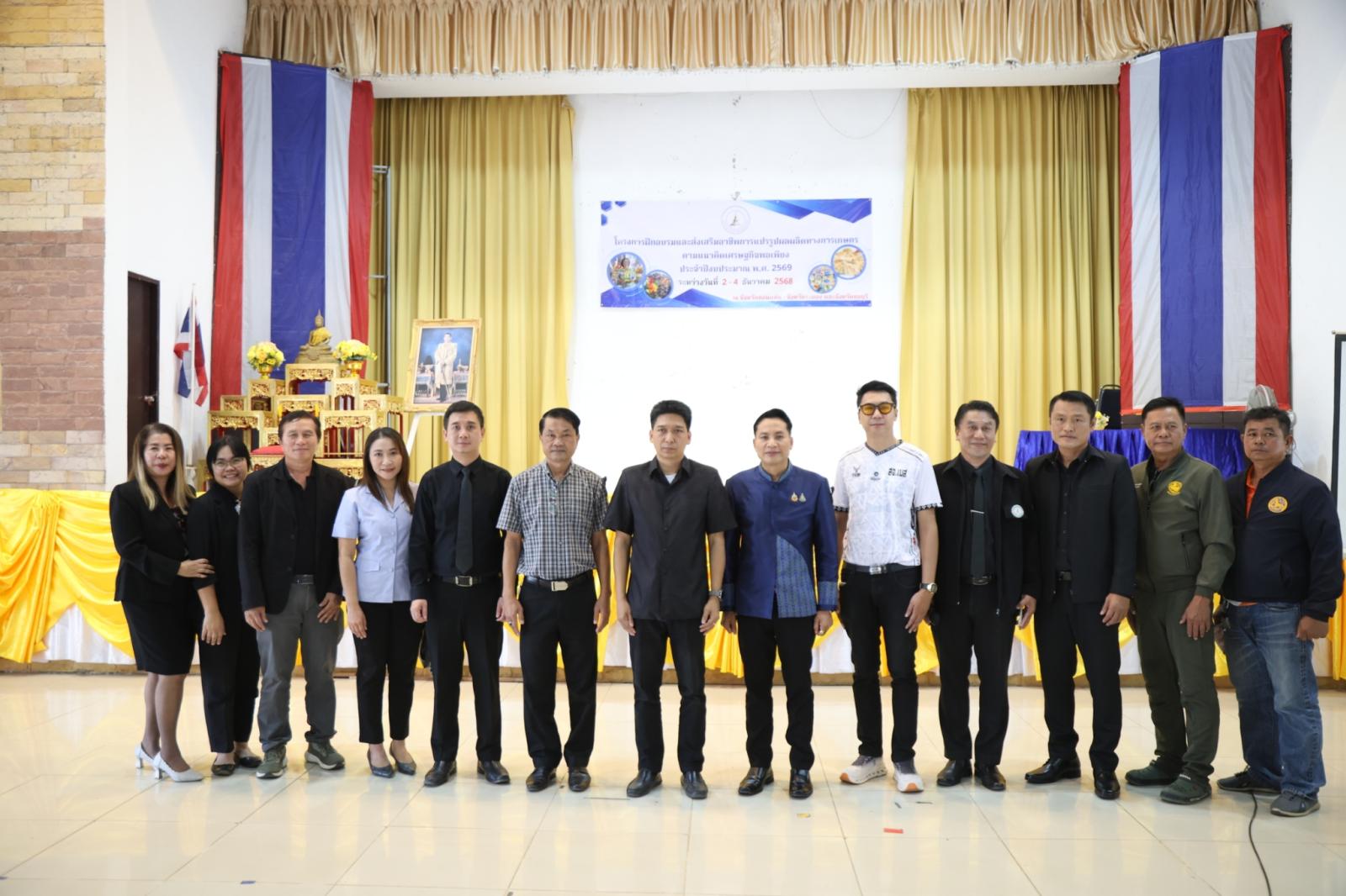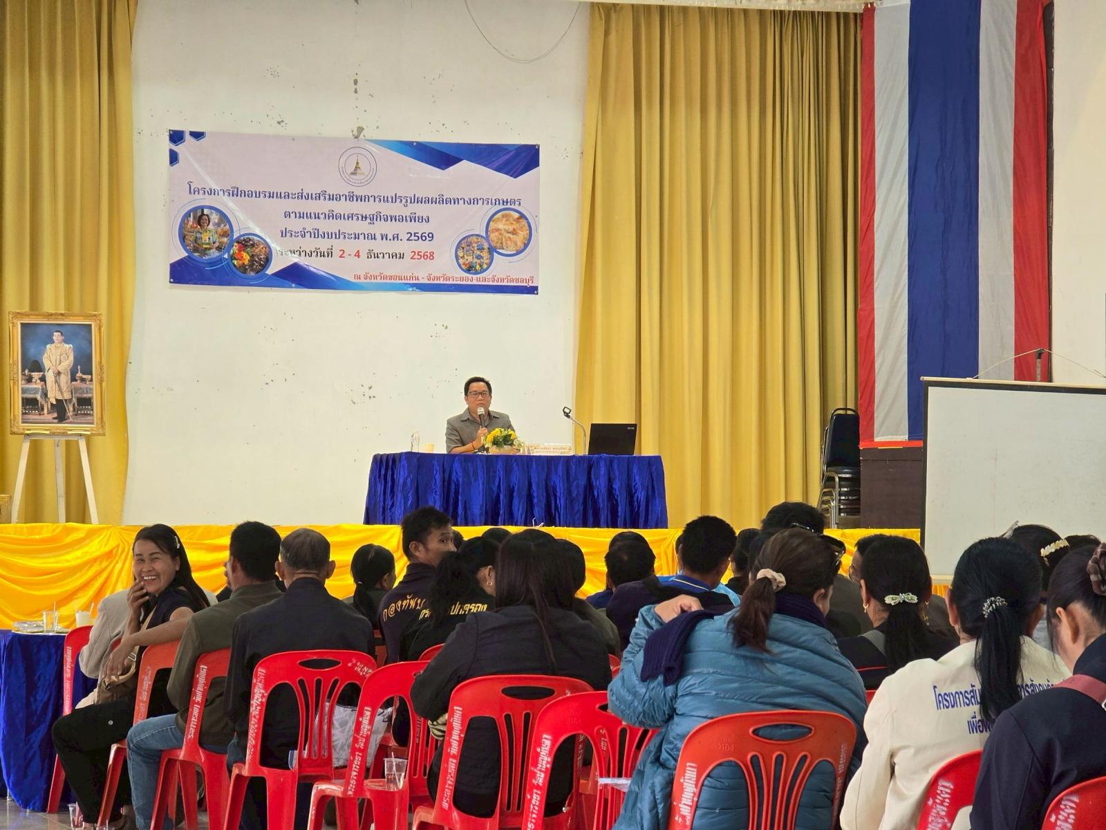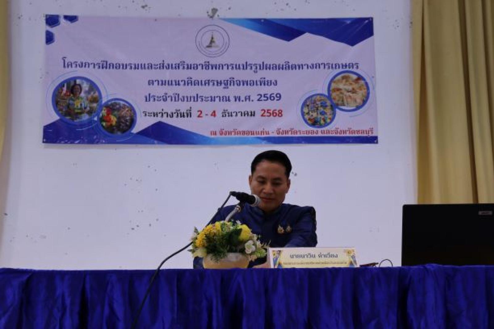 วันที่ 2 ธันวาคม 2568 เวลา 10.30 น. องค์การบริหารส่วนจังหวัดขอนแก่น นำโดย นายวัฒนา ช่างเหลา นายก อบจ.ขอนแก่น มอบหมายให้ นายนาวิน คำเวียง รองนายก อบจ.ขอนแก่น เป็นประธานในพิธีเปิด โครงการฝึกอบรมและส่งเสริมอาชีพการแปรรูปผลผลิตทางการเกษตรตามแนวคิดเศรษฐกิจพอเพียง ประจำปีงบประมาณ 2569