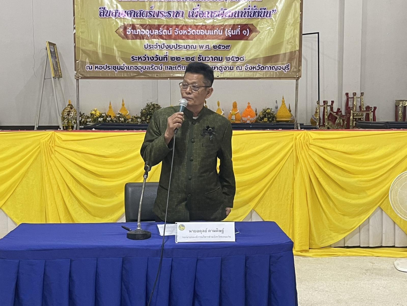 ออกตรวจติดตามอุดหนุนที่ว่าการปกครองอำเภออุบลรัตน์ โครงการอบรมเชิงปฏิบัติการเสริมสร้างพลังแผ่นดินปกป้องสถาบันสืบสานศาสตร์พระราชาเพื่อการพัฒนาที่ยั่งยืน อำเภออุบลรัตน์ จังหวัดขอนแก่น ประจำปีงบประมาณ พ.ศ.2569 จำนวน 2 รุ่น เมื่อวันจันทร์ที่ 22 ธันวาคม 2568 ณ หอประชุมอำเภออุบลรัตน์ จังหวัด