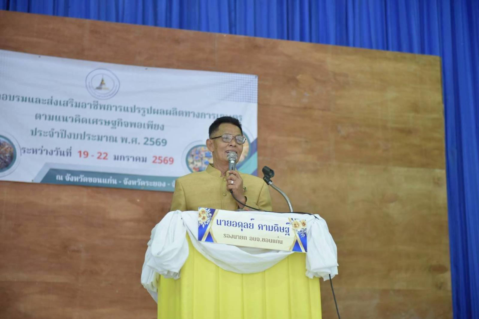 องค์การบริหารส่วนจังหวัดขอนแก่น นำโดย นายวัฒนา ช่างเหลา นายกองค์การบริหารส่วนจังหวัดขอนแก่น มอบหมายให้ นายอดุลย์ คามดิษฐ์ รองนายกองค์การบริหารส่วนจังหวัดขอนแก่น เป็นประธานในพิธีเปิดโครงการฝึกอบรมและส่งเสริมอาชีพการแปรรูปผลผลิตทางการเกษตร ตามแนวคิดเศรษฐกิจพอเพียง ประจำปีงบประมาณ 2569 เมื่อวันที่ 19 มกราคม 2569 โครงการดังกล่าวจัดขึ้นเพื่อส่งเสริมให้เกษตรกรและประชาชนในพื้นที่ อำเภอโคกโพธิ์ไชย มีความรู้และทักษะด้านการแปรรูปผลผลิตทางการเกษตร ตลอดจนเกิดการแลกเปลี่ยนเรียนรู้ด้านการผลิต การแปรรูป และการตลาด เพื่อพัฒนาสู่การเป็นชุมชนที่มีความเข้มแข็ง สามารถพึ่งพาตนเองได้อย่างยั่งยืน ในโอกาสนี้มี นายบุญรอด ชาวเขาอ้อ นายอำเภอโคกโพธิ์ไชย พร้อมด้วยเกษตรกร ประชาชนในพื้นที่ เจ้าหน้าที่สำนักปลัดฯ ฝ่ายอำนวยการ และแขกผู้มีเกียรติ เข้าร่วมพิธี ณ หอประชุมอำเภอโคกโพธิ์ไชย จังหวัดขอนแก่น