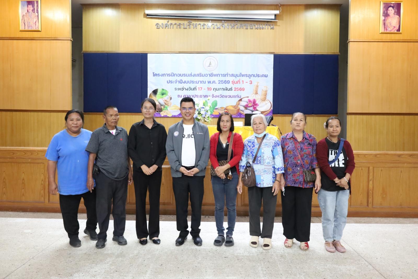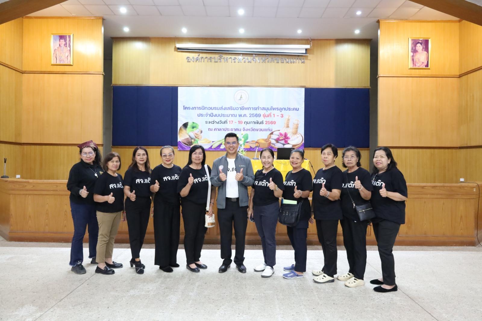 เมื่อวันที่ 19 กุมภาพันธ์ 2569 เวลา 11.00 น. องค์การบริหารส่วนจังหวัดขอนแก่น เดินหน้าส่งเสริมอาชีพให้ประชาชนอย่างต่อเนื่อง โดย นายวัฒนา ช่างเหลา นายกองค์การบริหารส่วนจังหวัดขอนแก่น มอบหมายให้ นาย นาวิน คำเวียง รองนายกองค์การบริหารส่วนจังหวัดขอนแก่น เป็นประธานเปิด โครงการฝึกอบรมส่งเสริมอาชีพการทำสมุนไพรลูกประคบ ประจำปีงบประมาณ พ.ศ. 2569 รุ่นที่ 3 ณ ศาลาประชาคมองค์การบริหารส่วนจังหวัดขอนแก่น