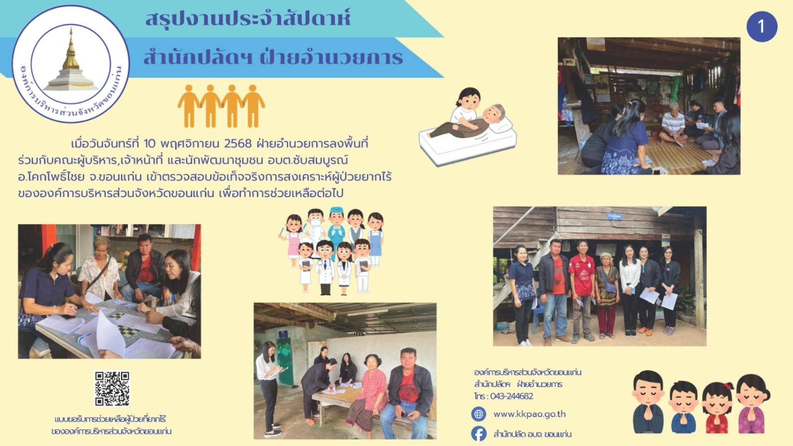 ลงพื้นที่ตรวจสอบข้อเท็จจริงการสงเคราะห์ผู้ป่วยที่ยากไร้ เมื่อวันที่ 10 - 14 พฤศจิกายน 2568