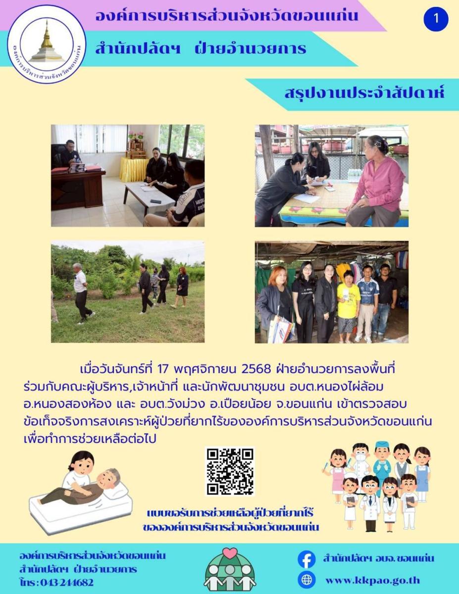 ลงพื้นที่ตรวจสอบข้อเท็จจริงการสงเคราะห์ผู้ป่วยที่ยากไร้ เมื่อวันที่ 17 - 20 พฤศจิกายน 2568