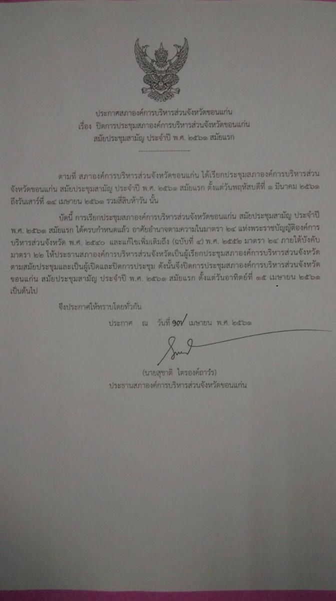 | 30/01/2018 | ติดประกาศการประชุมสภา อบจ.ขอนแก่น |