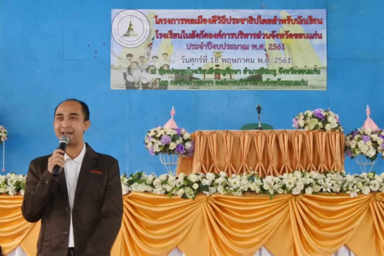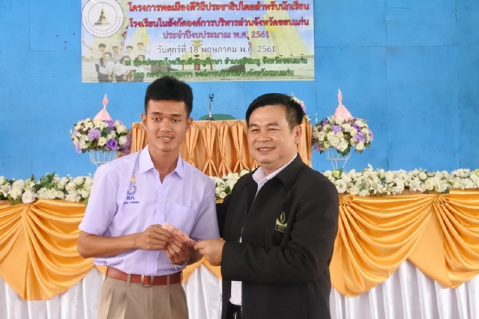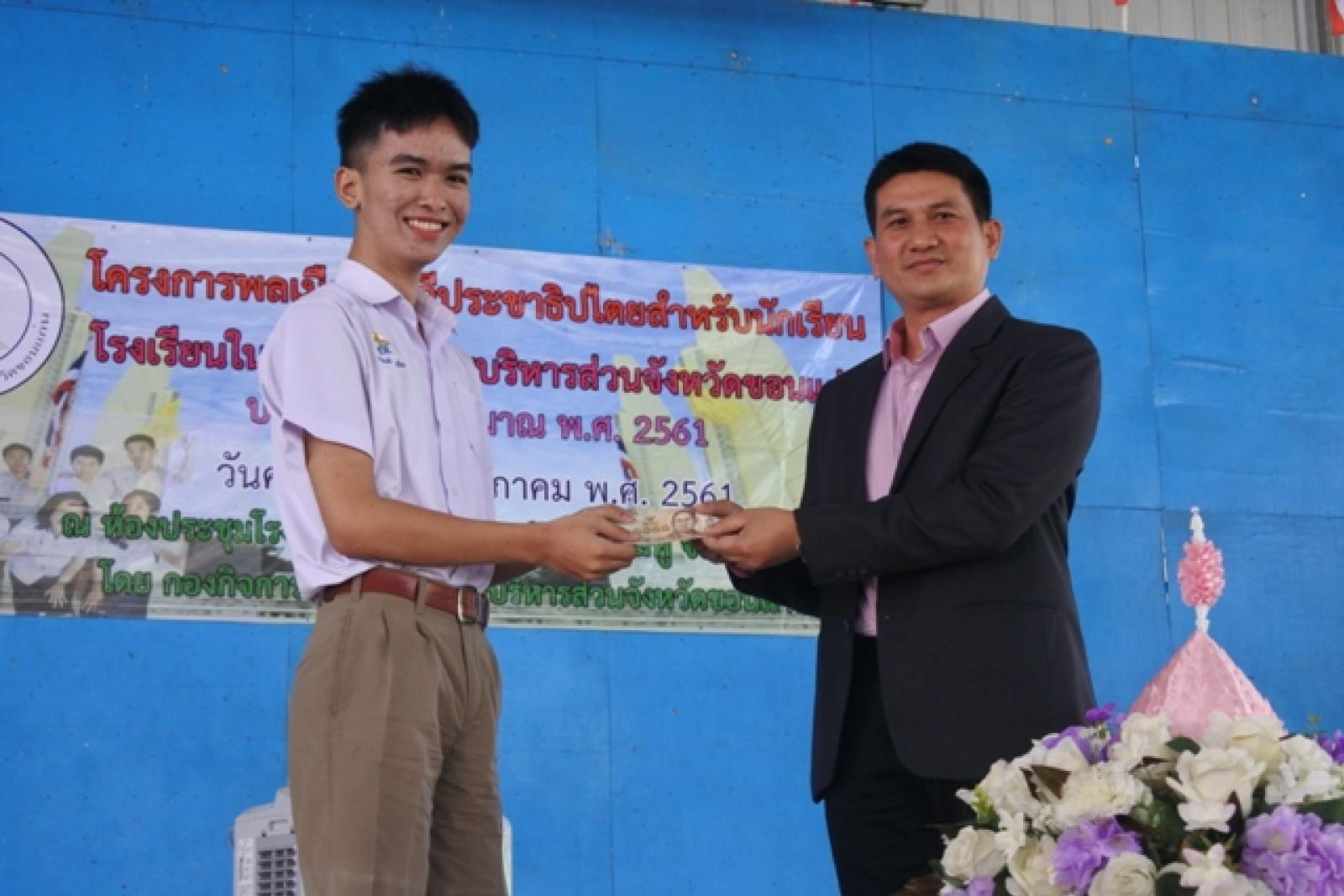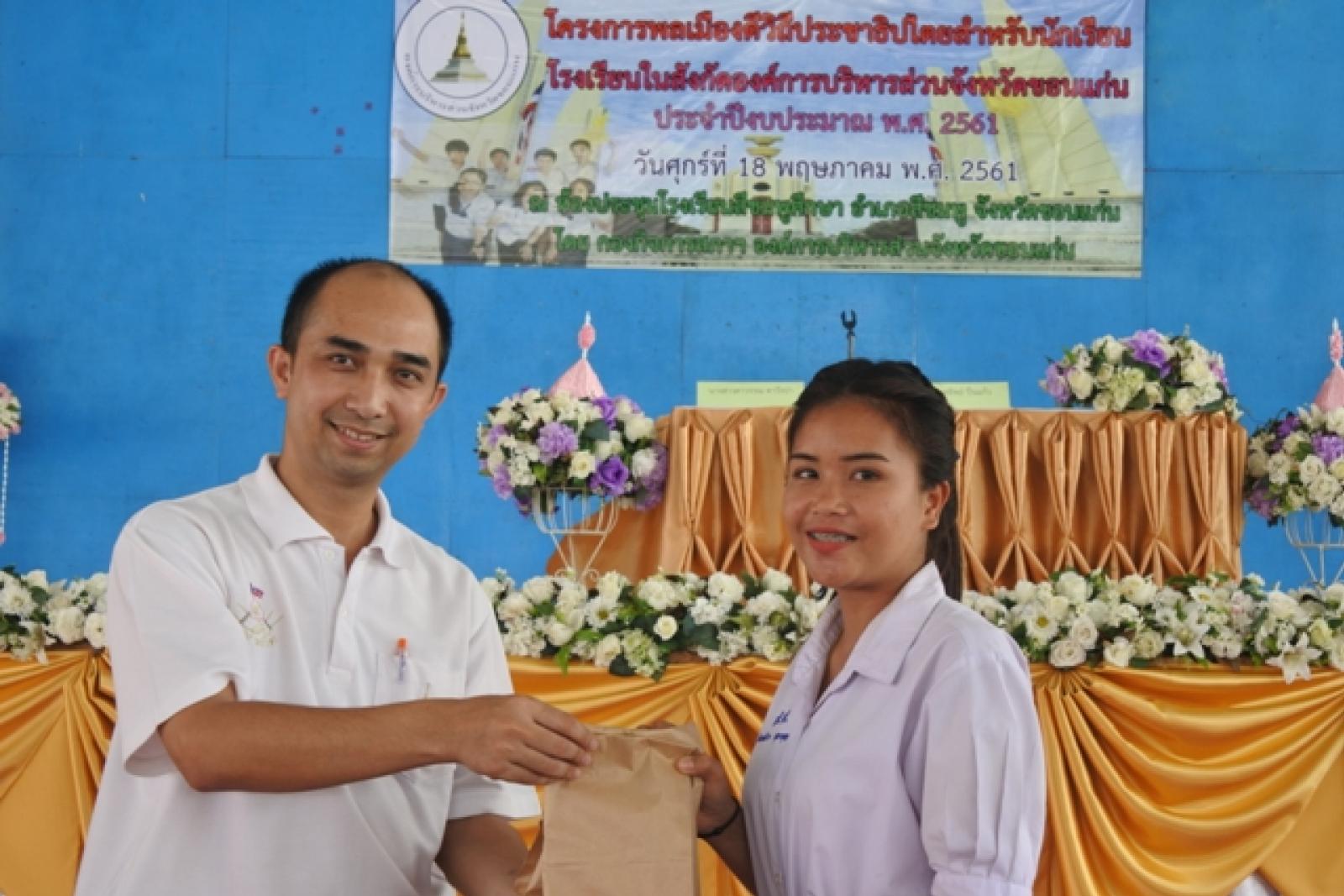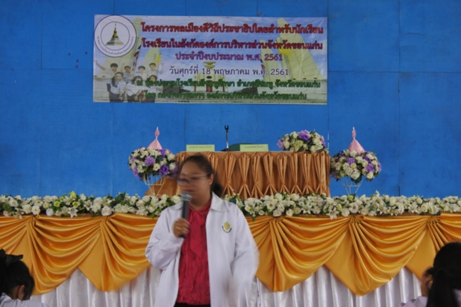 ►เมื่อวันที่ 18 พฤษภาคม 2561 นายก อบจ.ขอนแก่น ดร.พงษ์ศักดิ์ ตั้งวานิชกพงษ์ ได้มอบหมายให้ รองนายก อบจ. ขอนแก่น นายสิทธิกุล ภูคำวงศ์ เป็นประธานเปิดโครงการพลเมืองดีวิถีประชาธิปไตยสำหรับนักเรียนโรงเรียนในสังกัด องค์การบริหารส่วนจังหวัดขอนแก่น ประจำปีงบประมาณ 2561 ( โรงเรียนสีชมพู อำเภอสีชมพู) โดยมี นางวราพร หาญชนะชัยกุล ผอ.กองกิจการสภา กล่าวรายงาน
