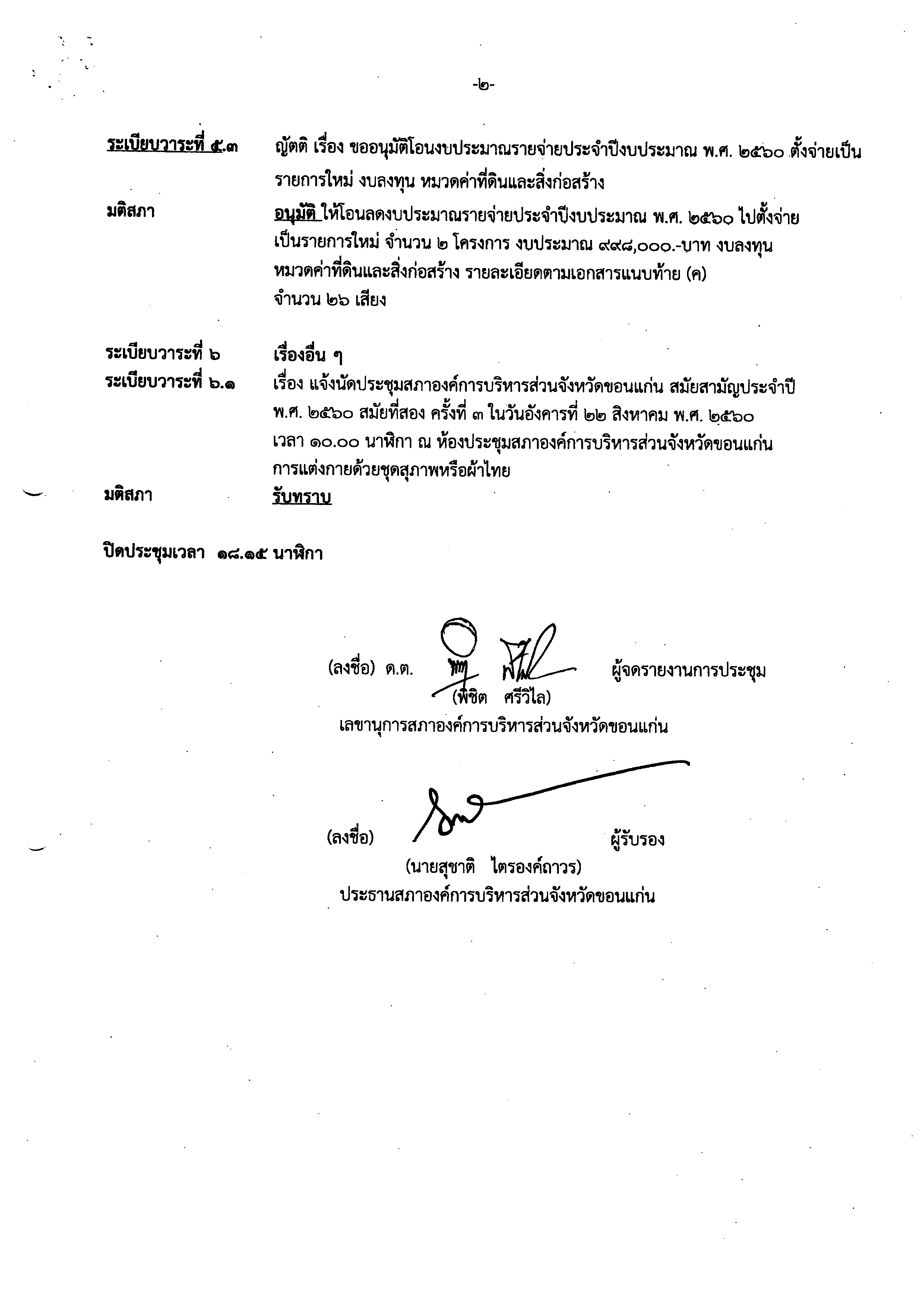 มติสภาองค์การบริหา่รส่วนจังหวัดขอนแก่น สมัยประชุมสามัญ ประจำปี 2562 สมัยที่สอง ครั้งที่ 1 วันที่ 23 ส.ค. 2562