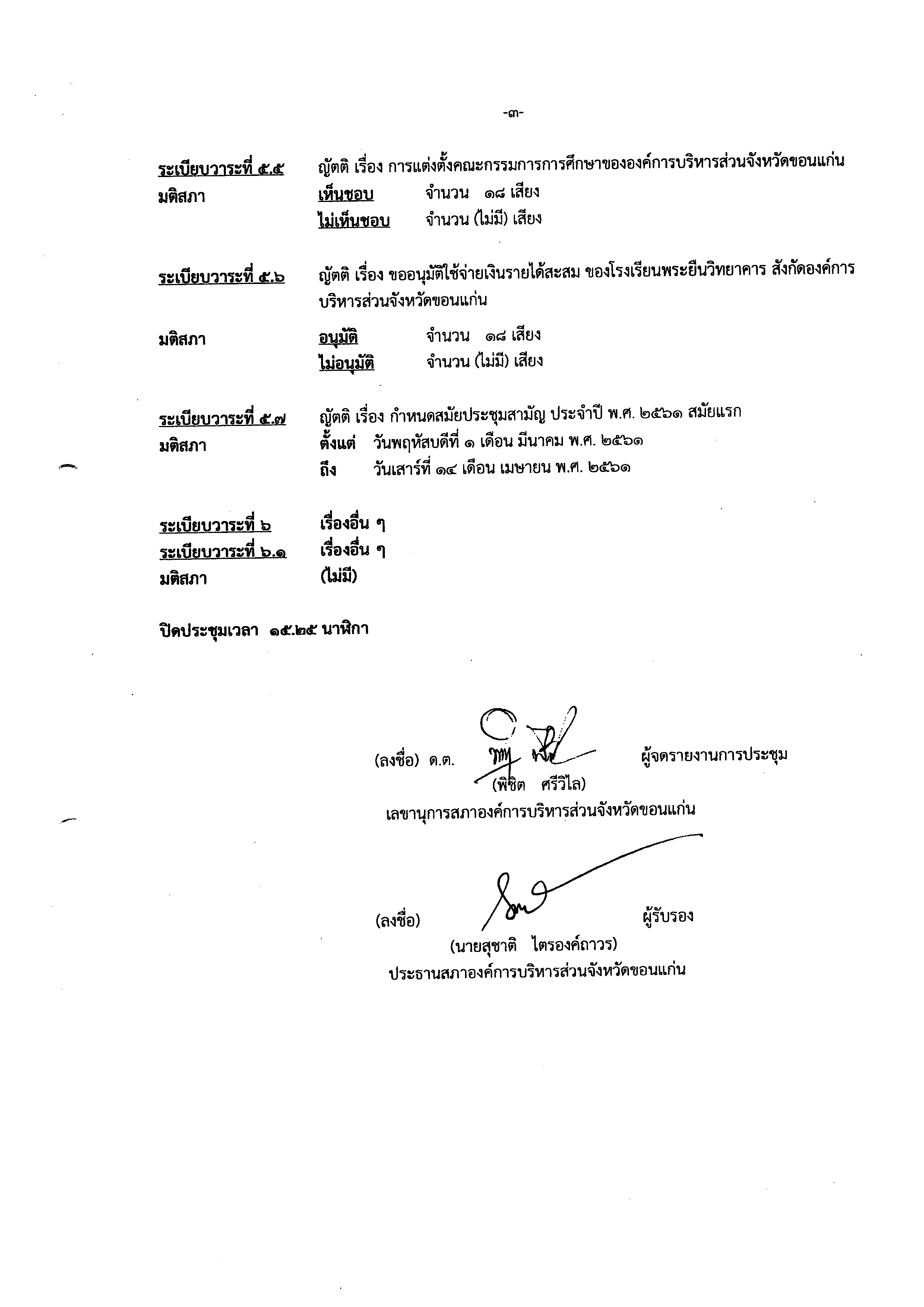 มติสภาองค์การบริหารส่วนจังหวัดขอนแก่น สมัยประชุมวิสามัญ ประจำปี พ.ศ.2561 ครั้งที่ 3 วันที่ 25 กย. 2561