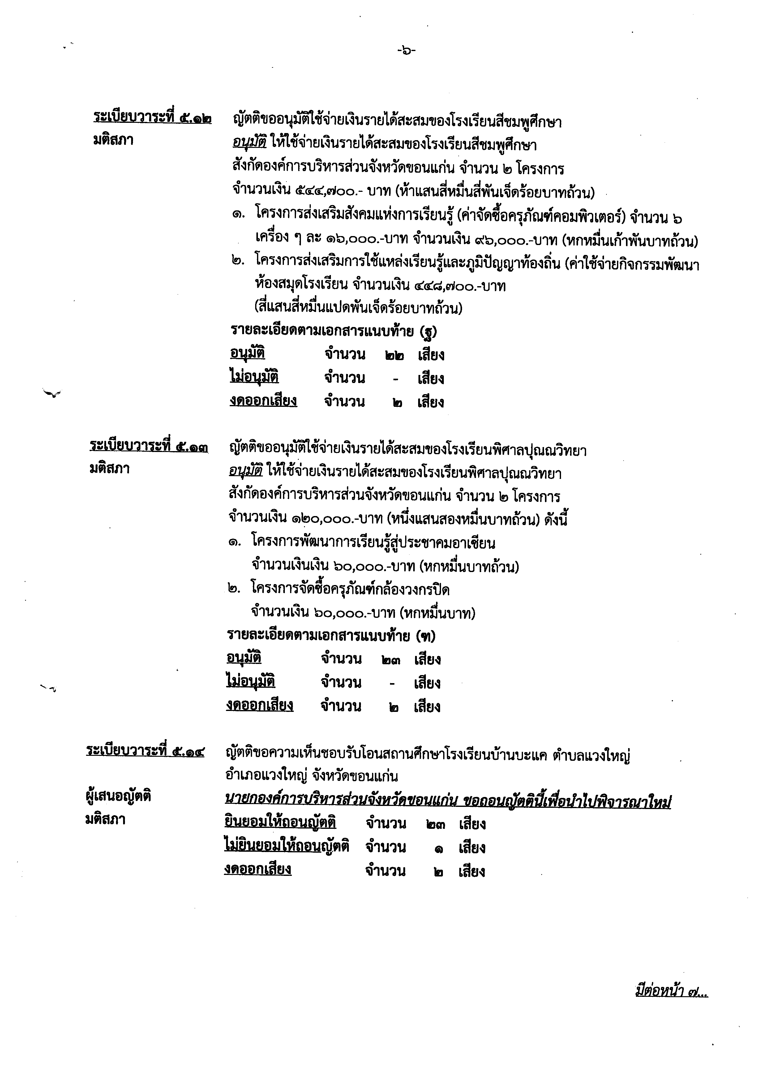 มติสภาองค์การบริหารส่วนจังหวัดขอนแก่น