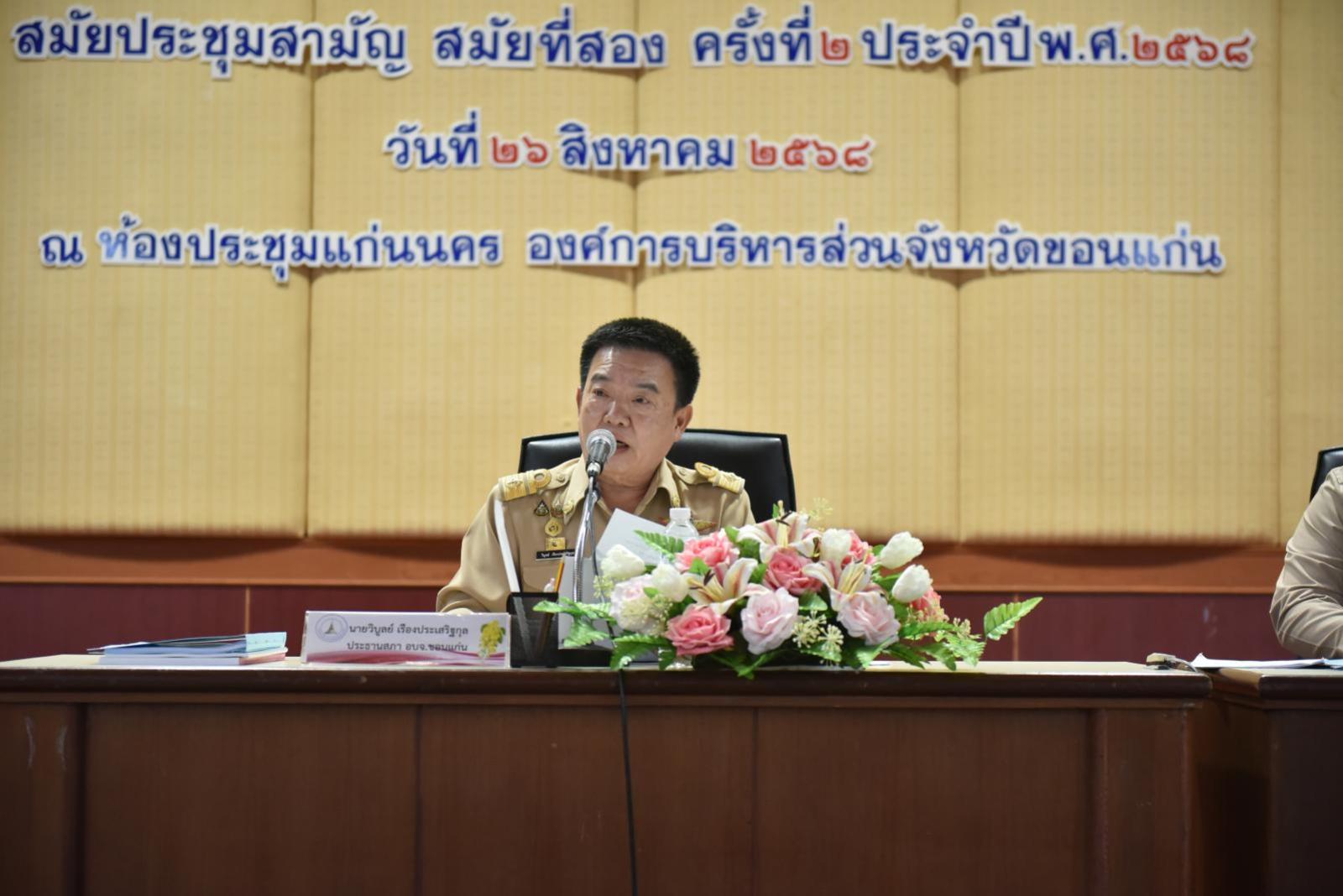วันอังคารที่ 26 สิงหาคม 2568 เวลา 13.00 น. ณ ห้องประชุมแก่นนคร องค์การบริหารส่วนจังหวัดขอนแก่น นายวิบูลย์ เรืองประเสริฐกุล ประธานสภาองค์การบริหารส่วนจังหวัดขอนแก่น เป็นประธานเปิดการประชุมสภาองค์การบริหารส่วนจังหวัดขอนแก่น สมัยประชุมสามัญ สมัยที่สอง ครั้งที่ 2 ประจำปี 2568
