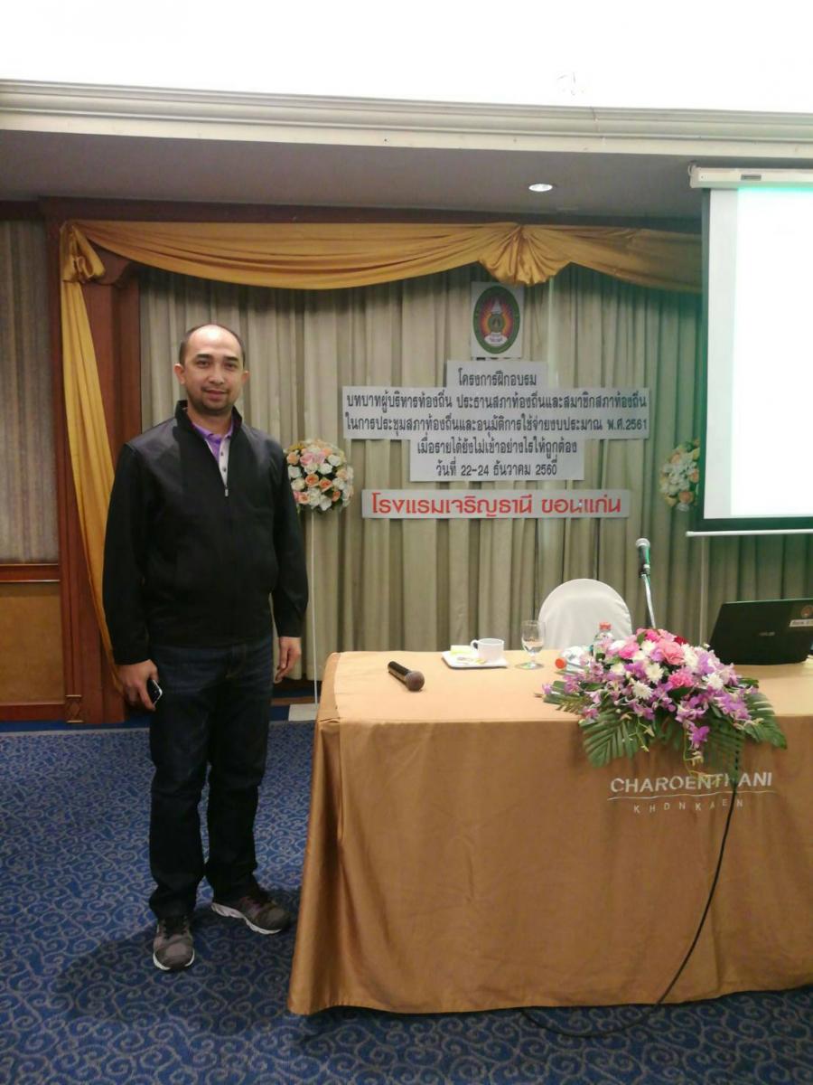 กองกิจการสภาองค์การบริหารส่วนจังหวัด จังหวัดขอนแก่น ส่ง จนท. จำนวน ๔ ท่าน เข้าร่วมอบรม บทบาทผู้บริหารท้องถิ่นประธานสภาท้องถิ่นและสมาชิกสภาท้องถิ่นและอนุมัติการใช้จ่ายเงินงบประมาร พ.ศ. ๒๕๖๑ เมื่อรายได้ยังไม่เข้ายังไงถูกต้อง ระหว่างวันที่ ๒๒ - ๒๔ ธันวราคม ๒๕๖๑ ณ โรงแรมเจริญธานี จังหวัดขอนแก่น