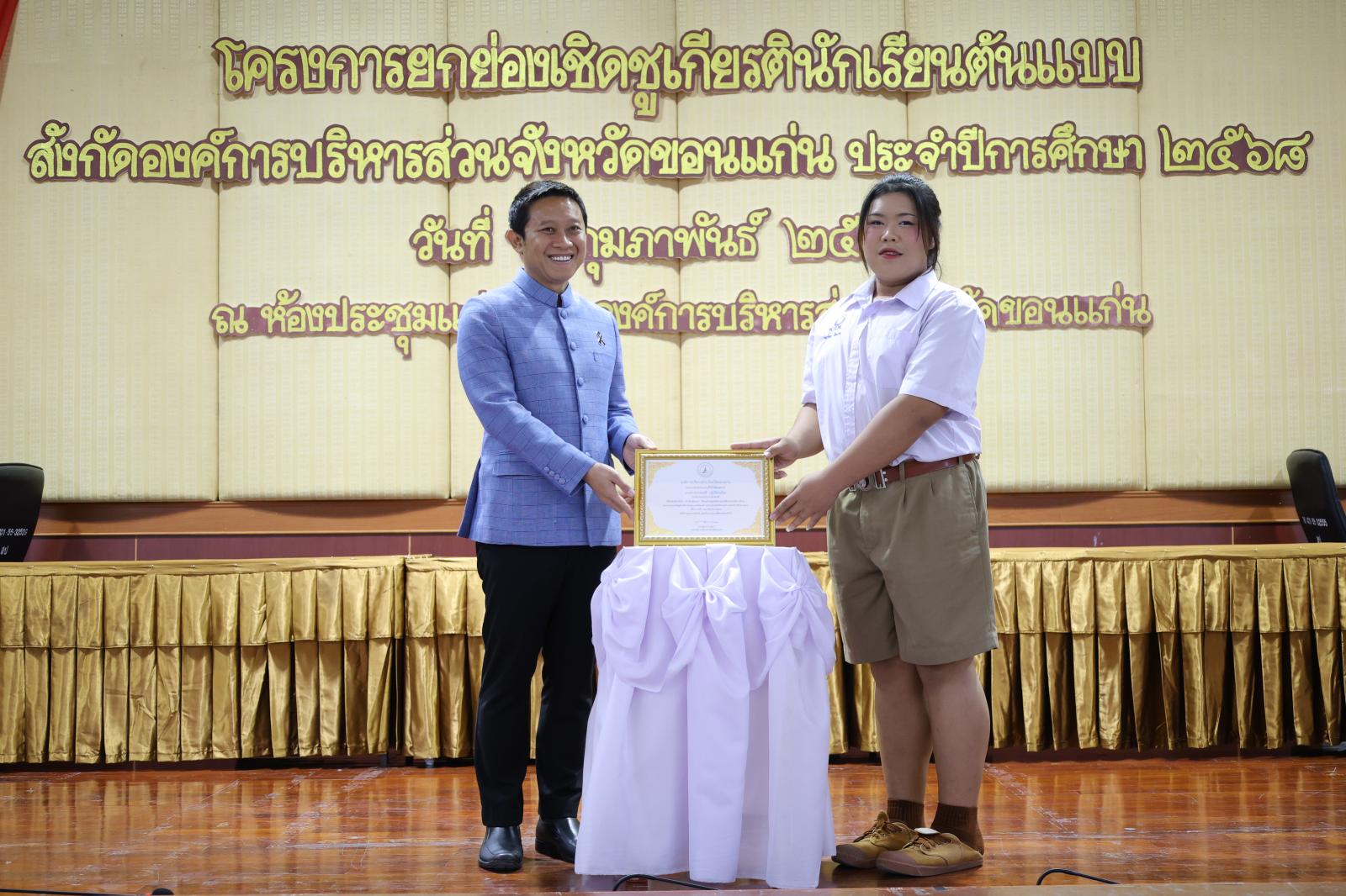 อบจ.ขอนแก่น มอบใบประกาศเชิดชูเกียรติ “นักเรียนต้นแบบ” ประจำปีการศึกษา 2568 ยกย่องเยาวชนคนเก่ง คนดี มีจิตสาธารณะ โครงการจัดงานบุปผชาติสักการะบูชาพุทธมณฑลอีสาน จังหวัดขอนแก่น ประชุมข้าราชการ พนักงาน องค์การบริหารส่วนจังหวัดขอนแก่น ครั้งที่ 1/2569 ประชุมสภาองค์การบริหารส่วนจังหวัดขอนแก่น สมัยประชุมวิสามัญ ครั้งที่ 1 ประจำปี พ.ศ. 2569 เปิดกิจกรรมกีฬานักเรียน สพป.ขอนแก่น เขต 1 ตามโครงการส่งเสริมศักยภาพนักเรียน ครู และบุคลากรทางการศึกษา ด้านศิลปะ ดนตรี กีฬา และวิชาการ ประจำปีงบประมาณ พ.ศ.2569 เปิดการแข่งขันกีฬานักเรียนต้านสิ่งเสพติดและอบายมุขในสถานศึกษา “สพป.ขอนแก่น เขต 4 เกมส์” ประจำปี 2568 อบจ.ขอนแก่น ร่วมพิธีเปิดโครงการประชุมทางวิชาการองค์กรปกครองส่วนท้องถิ่นพลังขับเคลื่อนสู่บริการสาธารณะที่ดีและมีคุณธรรม ประจำปี พ.ศ. 2568 พิธีเปิดการแข่งขันฟุตบอลอาวุโส องค์การบริหารส่วนจังหวัด ชิงแชมป์ประเทศไทย พ.ศ.๒๕๖๘ พิธีเปิดการแข่งขันกีฬา-กรีฑานักเรียน ศูนย์เครือข่ายโรงเรียนแก่นหว้าเซิน ประจำปีการศึกษา 2568 “แก่นหว้าเซินเกมส์” เปิดโครงการศึกษาดูงานและเสริมสร้างศักยภาพอาสาสมัครท้องถิ่นรักษ์โลก (อ.ส.ล.) และแกนนำสุขภาพ เพื่อการพัฒนาสิ่งแวดล้อมและสุขภาวะชุมชนอย่างยั่งยืน ปีงบประมาณ 2569 องค์การบริหารส่วนจังหวัดขอนแก่น การประชุมข้าราชการและพนักงาน อบจ.ขอนแก่น ครั้งที่ 12/2568 เปิดการแข่งขันกีฬาภายใน โรงเรียนโนนหันวิทยายน ครั้งที่ 44 “ม่วง - ขาว เกมส์” ประจำปีการศึกษา 2568 เปิดการแข่งขันงานศิลปหัตถกรรมนักเรียน ครั้งที่ 73 ปีการศึกษา 2568 สำนักงานเขตพื้นที่การศึกษาประถมศึกษาขอนแก่น เขต 4 โครงการถนนดี มีน้ำดื่ม - น้ำใช้ รวมใจสู้สาธารณภัย ภารกิจผู้บริหารองค์การบริหารส่วนจังหวัดขอนแก่น ประจำเดือน กันยายน 2568