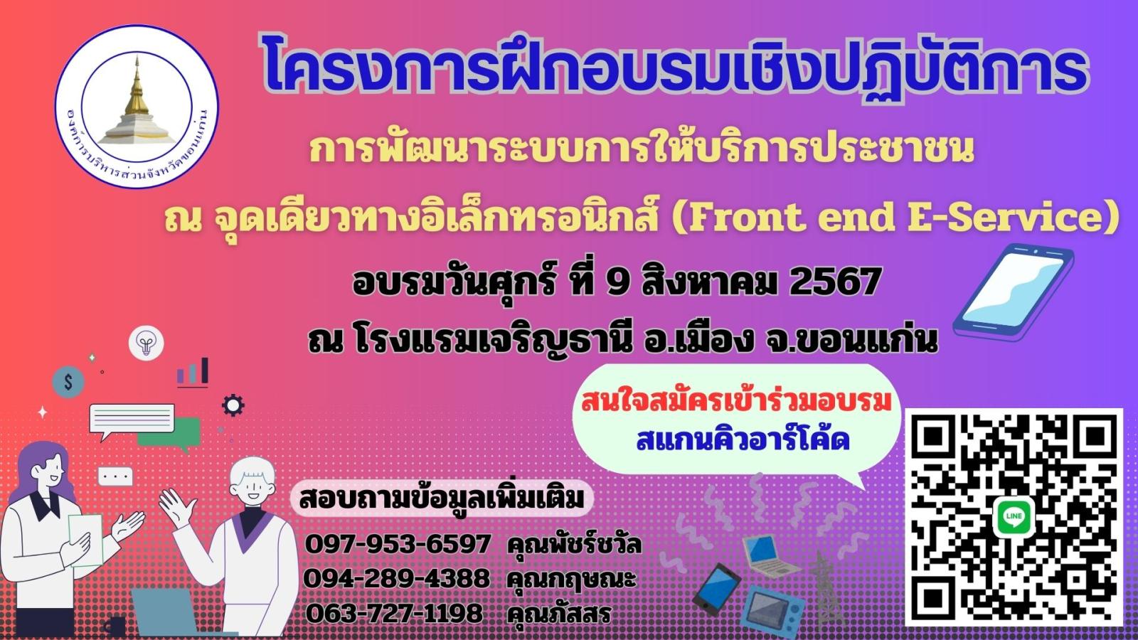| 25/07/2024 | โครงการฝึกอบรมเชิงปฏิบัติการ การพัฒนาระบบการให้บริการประชาชน ณ จุกเดียวทางอิเล็กทรอนิกส์ (Front end E-Service) |