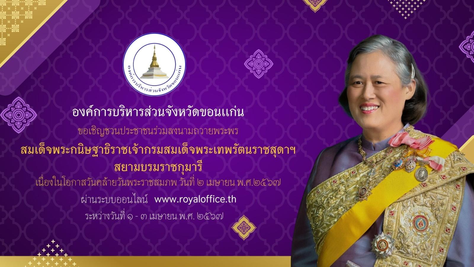 องค์การบริหารส่วนจังหวัดขอนแก่น ขอเชิญชวนประชาชนร่วมลงนามถวายพระพร