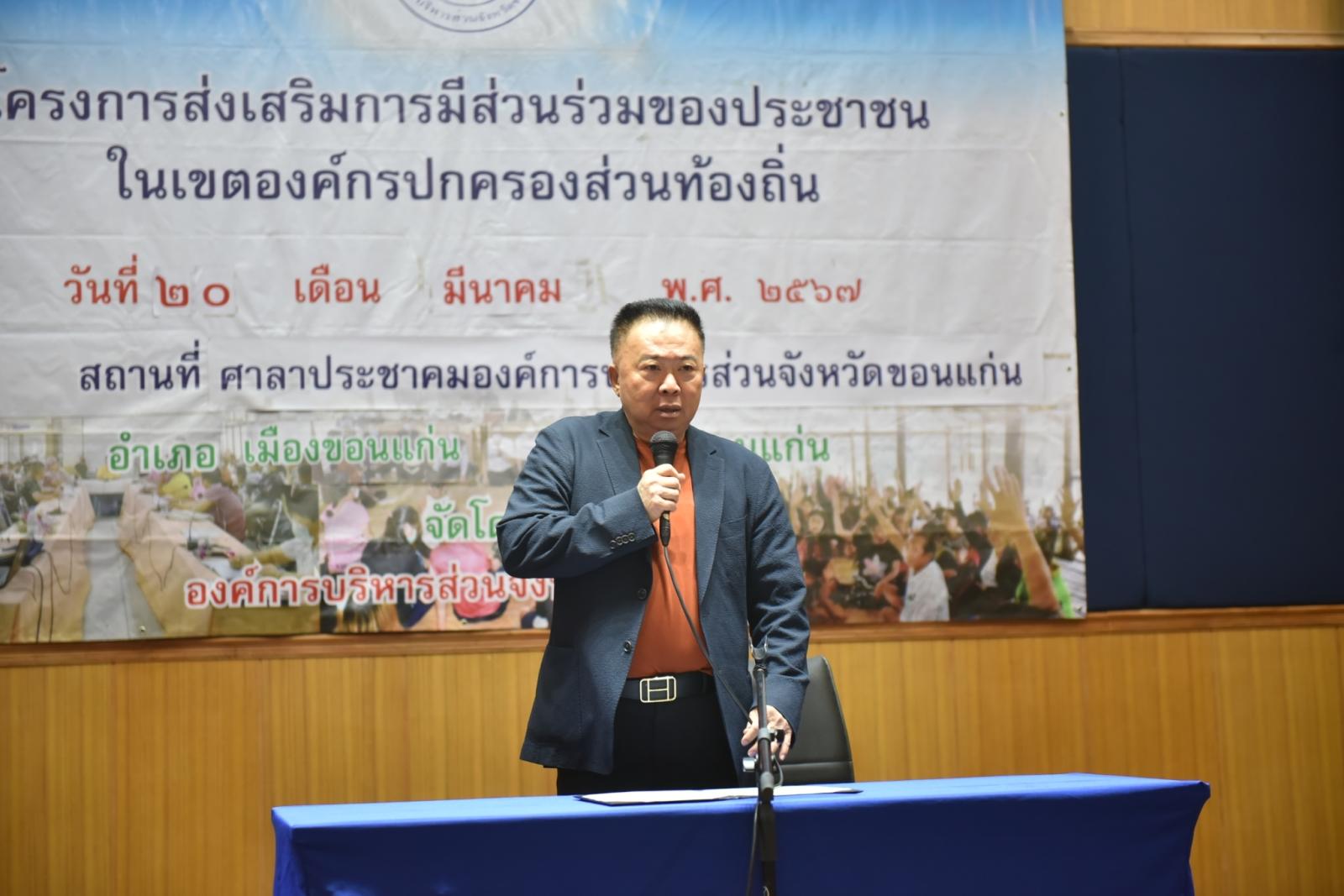 วันที่ 20 มีนาคม 2567 เวลา 11.00 น. ดร.พงษ์ศักดิ์ ตั้งวานิชกพงษ์ นายกองค์การบริหารส่วนจังหวัดขอนแก่น เป็นประธานเปิดโครงการส่งเสริมการมีส่วนร่วมของประชาชนในเขตองค์กรปกครองส่วนท้องถิ่น อ.เมืองขอนแก่น เขต1,3 จำนวน 400 คน ในโอกาสนี้มี นายสิทธิกุล ภูคำวงศ์ รองนายก อบจ.ขอนแก่น พร้อมด้วย นายณณท์พัชธี กันตวธีระณัต ส.อบจ.ขอนแก่น อ.เมือง เขต 1 , นายสุรพล เชื้อชมกุล ส.อบจ.ขอนแก่น อ.เมือง เขต 3 และคณะผู้บริหาร หัวหน้าส่วนราชการ เจ้าหน้าที่ อบจ.ขอนแก่น ร่วมเป็นเกียรติในพิธี ณ ศาลาประชาคมองค์การบริหารส่วนจังหวัดขอนแก่น