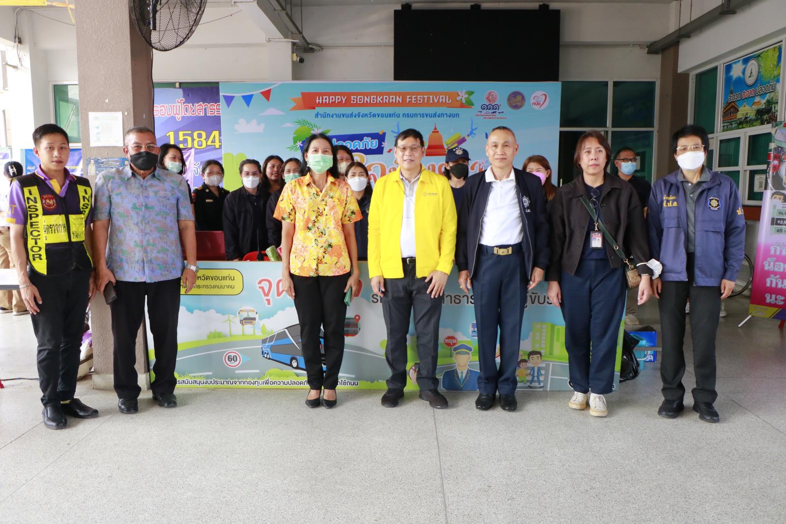เมื่อวันที่ 12 เมษายน เวลา 13.30 น. ดร.พงษ์ศักดิ์ ตั้งวานิชกพงษ์ นายกองค์การบริหารส่วนจังหวัดขอนแก่น มอบหมายให้ นายประสิทธิ์ ทองแท่งไทย รองนายกองค์การบริหารส่วนจังหวัดขอนแก่น ออกตรวจเยี่ยมเตรียมความพร้อมของสถานีขนส่งแห่งที่ 3 จังหวัดขอนแก่น ในห่วงวันหยุดวันสงกรานต์ ซึ่งความปลอดภัย ความสะอาด ตลอดจนความเรียบร้อย และอำนวยความสะดวกในการเดินทาง พร้อมด้วย นางสุภาพร ภูเงิน ผู้อำนวยการกองกิจการขนส่ง หัวหน้าส่วนราชการ ข้าราชการ เจ้าหน้าที่ กองกิจการขนส่งองค์การบริหารส่วนจังหวัดขอนแก่น ณ สถานีขนส่งแห่งที่3 จังหวัดขอนแก่น อำเภอเมือง จังหวัดขอนแก่น