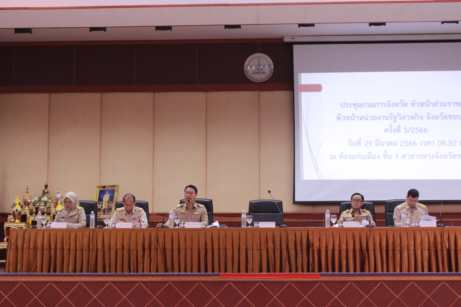 เมื่อวันที่ 3 เมษายน 2566 เวลา 09.30 น. ดร.พงษ์ศักดิ์ ตั้งวานิชกพงษ์ นายกองค์การบริหารส่วนจังหวัดขอนแก่น มอบหมายให้ นายธาดา พรมสาขา ณ สกลนคร , นายประสิทธิ ทองแท่งไทย รองนายกองค์การบริหารส่วนจังหวัดขอนแก่น เป็นประธานใน การประชุมประจำเดือน ข้าราชการ พนักงาน องค์การบริหารส่วนจังหวัดขอนแก่น ครั้งที่ 4/2566 พร้อมด้วย ว่าที่ร้อยเอกพงเจตน์ พรกุณา ปลัดองค์การบริหารส่วนจังหวัดขอนแก่น ,นายนพกุล ปัญญาแก้ว , นางอาซีซะห์ ว่องไว รองปลัดองค์การบริหารส่วนจังหวัดขอนแก่น หัวหน้าส่วนราชการองค์การบริหารส่วนจังหวัด ผู้อำนวยการโรงเรียนในสังกัดองค์การบริหารส่วนจังหวัดขอนแก่น ผู้อำนวยการ รพ.สต. ในสังกัดองค์การบริหารส่วนจังหวัดขอนแก่น ข้าราชการ และพนักงานสังกัดองค์การบริหารส่วนจังหวัดขอนแก่น ณ หอประชุมองค์การบริหารส่วนจังหวัดขอนแก่น อำเภอเมือง จังหวัดขอนแก่น