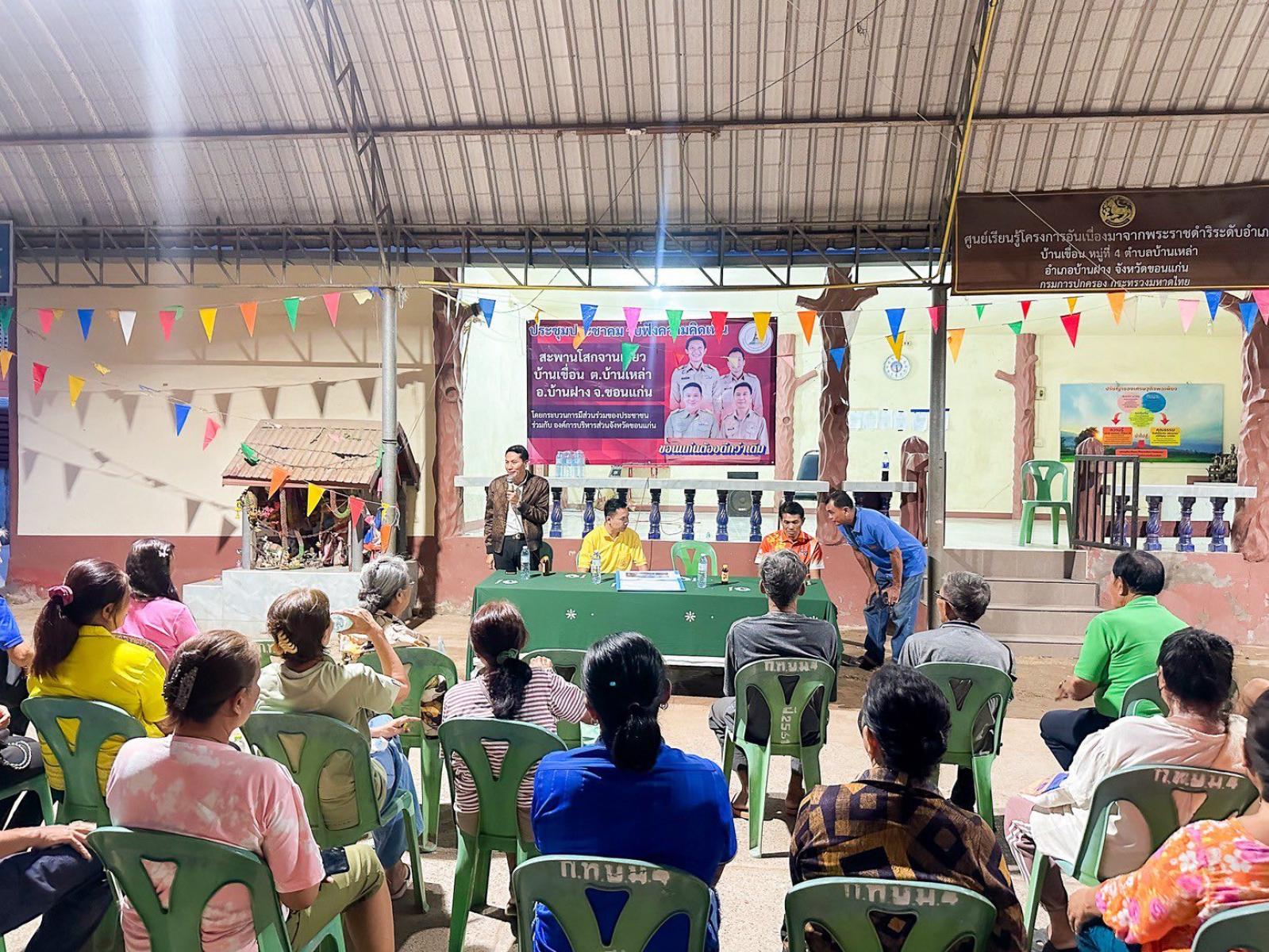 10/10/2025ประชาคมเพื่อรับฟังความคิดเห็นจากประชาชนใน “โครงการก่อสร้างสะพานโสกจันเกี้ยว” ณ บ้านเขื่อน ตำบลบ้านเหล่า อำเภอบ้านฝาง จังหวัดขอนแก่น