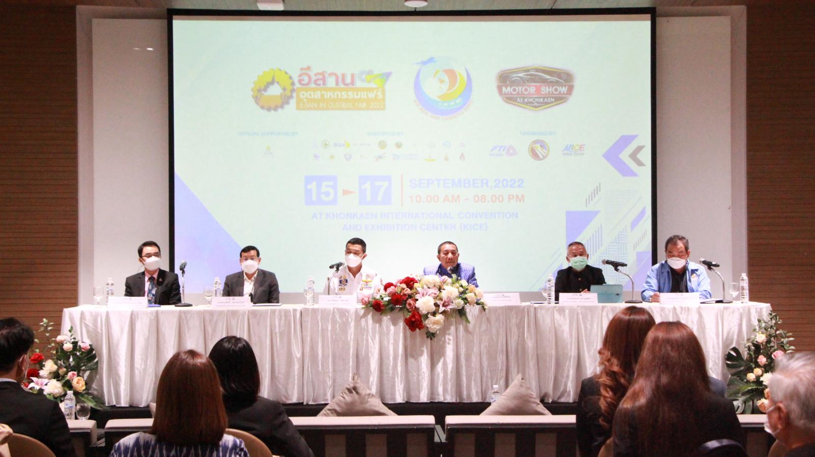 เมื่อวันที่ 6 กันยายน 2565 เวลา 13.30 น. ดร.พงษ์ศักดิ์ ตั้งวานิชกพงษ์ นายก อบจ.ขอนแก่น มอบหมายให้ นายประสิทธิ์ ทองแท่งไทย รองนายก อบจ.ขอนแก่น ร่วมแถลงข่าวงาน “Air Rail and Logistics 2022” ซึ่งสภาอุตสาหกรรมจังหวัดขอนแก่น ได้ร่วมกับภาคีเครือข่ายทั้งภาครัฐ ภาคเอกชน เพื่อสนองนโยบาย KHONKAEN MICE CITY ซึ่งมีกำหนดการจัดงาน ระหว่างวันที่ 15 – 17 กันยายน 2565 โดยมี นายสุเทพ มณีโชติ รองผู้ว่าราชการจังหวัดขอนแก่น,นายปานทอง สระคูพันธ์ ที่ปรึกษาอาวุโส สำนักงานส่งเสริมการจัดประชุมและนิทรรศการภาคตะวันออกเฉียงเหนือ,นายบุญฤทธิ์ พาณิชย์รุ่งเรือง รองนายกเทศมนตรีนครขอนแก่น,ดร.ศุภฤกษ์ ชามงคลประดิษฐ์ คณบดีคณะวิศวกรรมศาสตร์ มหาวิทยาลัยราชมงคลอีสาน วิทยาเขตขอนแก่นและ ดร.ทวีสันต์ วิชัยวงษ์ ประธานสภาอุตสาหกรรมจังหวัดขอนแก่น ร่วมแถลงข่าวเกี่ยวกับการจัดงานในครั้งนี้ อีกทั้งยังมี ตัวแทนภาครัฐ และภาคเอกชน อาทิ กรมแรงงาน(จังหวัดขอนแก่น)หอการค้าไทย(จังหวัดขอนแก่น) ธนาคารยูโอบี จำกัด (มหาชน) เข้าร่วมรับฟังและเสนอแนะเกี่ยวกับการจัดงาน ณ ศูนย์ประชุมและแสดงสินค้านานาชาติขอนแก่น (KICE)