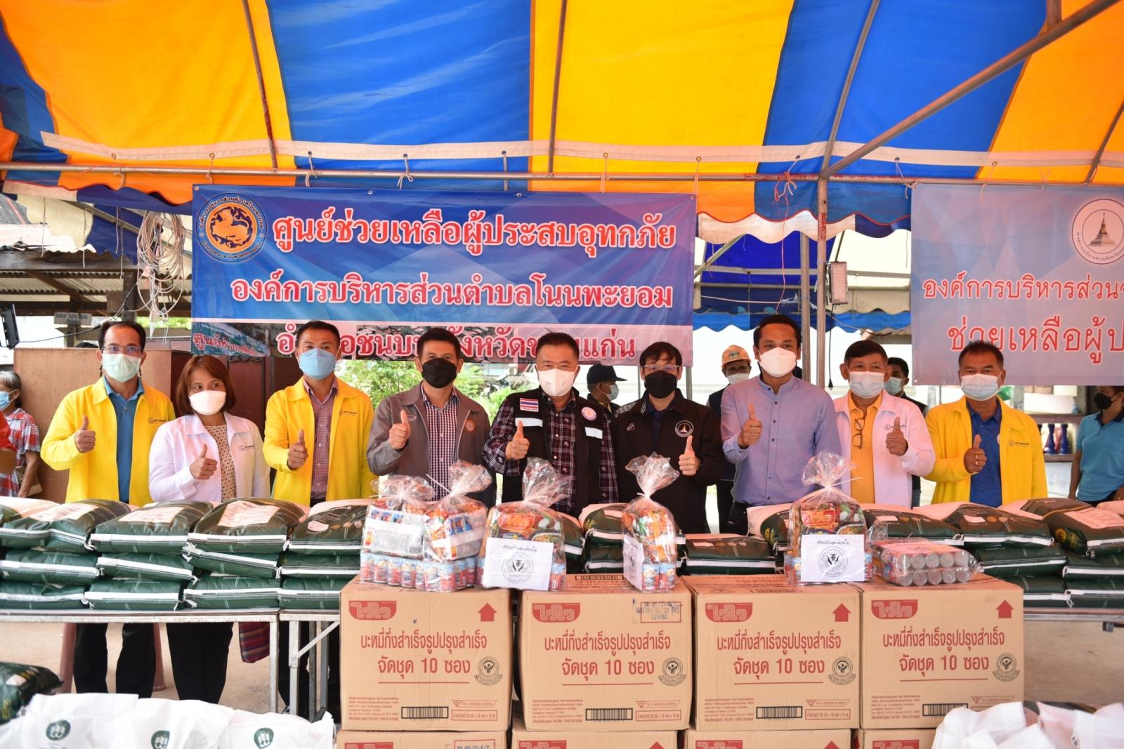 เมื่อวันที่ 8 ตุลาคม 2564 เวลา 09.00 น. ดร.พงษ์ศักดิ์ ตั้งวานิชกพงษ์ นายก อบจ.ขอนแก่น พร้อมด้วย นายสิทธิกุล ภูคำวงศ์, นายประสิทธิ์ ทองแท่งไทย รองนายก อบจ.ขอนแก่น, นายอรรถพล คามดิษฐ์ ส.อบจ.ขอนแก่น เขต อ.ชนบท คณะผู้บริหาร หัวหน้าส่วนราชการ ข้าราชการ อบจ.ขอนแก่น ลงพื้นที่มอบถุงยังชีพแก่ผู้ประสบอุทกภัย บ้านโนนพะยอม ต.โนนพะยอม อ.ชนบท จำนวน 115 ชุด ซึ่ง อบจ.ขอนแก่น ได้รับการสนับสนุนถุงยังชีพจากสมาคมองค์การบริหารส่วนจังหวัดแห่งประเทศไทยเพื่อช่วยเหลือผู้ประสบอุทกภัยในพื้นที่จังหวัดขอนแก่น จำนวน 1,000 ชุด โดยมี นายบุญชู จันทร์สุวรรณ นายกสมาคมองค์การบริหารส่วนจังหวัดแห่งประเทศไทย และคณะ ร่วมมอบถุงยังชีพ ณ วัดเจริญวารี บ้านโนนพะยอม ต.โนนพะยอม อ.ชนบท จ.ขอนแก่น