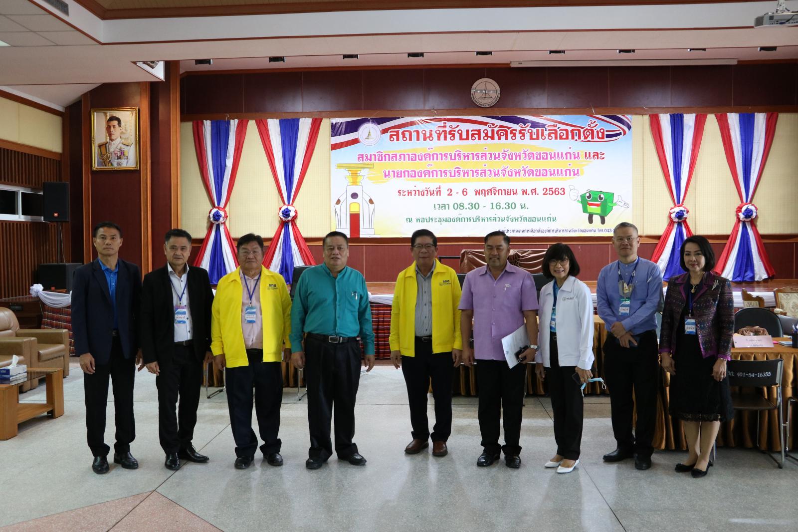 เมื่อวันที่ 10 พฤศจิกายน 2563 เวลา 14.00 น. นางพัฒนาวดี วิริยปิยะ ปลัดองค์การบริหารส่วนจังหวัดขอนแก่น ในฐานะ ผู้อำนวยการการเลือกตั้งประจำองค์การบริหารส่วนจังหวัดขอนแก่น พร้อมด้วย หัวหน้าส่วนราชการ ข้าราชการ อบจ.ขอนแก่น ร่วมให้การต้อนรับคณะผู้ตรวจการเลือกตั้งประจำจังหวัดขอนแก่น ซึ่งประกอบด้วย พลตำรวจเอกประสิทธิ์ ทำดี, พันเอกเรวัต ไคขุนทด, นายชาญวิทย์ มูลโคตร, นายคาน เศษรักษา, นายศิริพงษ์ มุขศรี, นายทรงศักดิ์ ไชยชมพู และนายเทวัญ สรรค์นิกร ในโอกาสเดินทางมาตรวจติดตามการจัดการเลือกตั้ง ส.อบจ.ขอนแก่น และนายก อบจ.ขอนแก่น ขององค์การบริหารส่วนจังหวัดขอนแก่น ณ ห้องประชุม อบจ.ขอนแก่น อ.เมืองขอนแก่น จ.ขอนแก่น