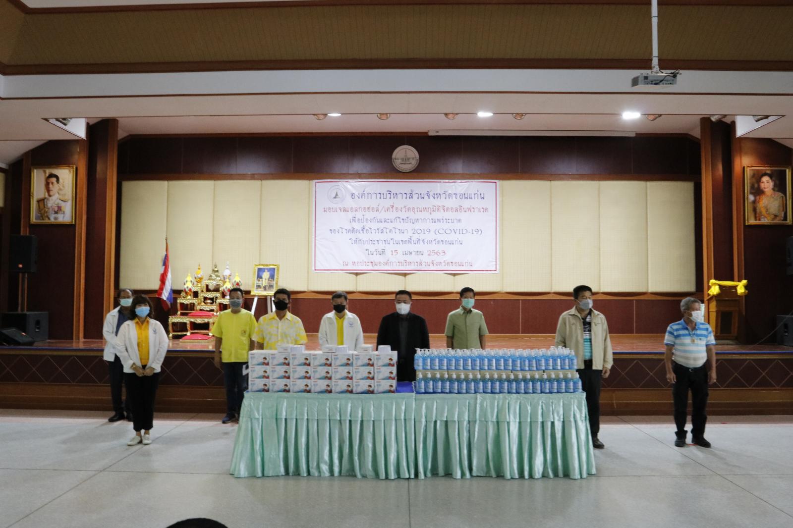 เมื่อวันที่ 15 เมษายน 2563 เวลา 13.30 น. ดร.พงษ์ศักดิ์ ตั้งวานิชกพงษ์ นายก อบจ.ขอนแก่น เป็นประธานในการมอบเจลล้างมือแอลกอฮอล์ เครื่องวัดอุณหภูมิดิจิตอลอินฟาเรด และแผ่นพับประชาสัมพันธ์ ตามโครงการป้องกันและควบคุมการแพร่ระบาดของโรคติดเชื้อไวรัสโคโรนา 2019 โดยมี นายสิทธิกุล ภูคำวงศ์ รองนายก อบจ.ขอนแก่น, ดร.สุชาติ ไตรองค์ถาวร ประธานสภา อบจ.ขอนแก่น, นายอำเภอ และผู้แทนนายอำเภอทั้ง 26 อำเภอ, สมาชิกสภา อบจ.ขอนแก่น, นางพัฒนาวดี วิริยปิยะ ปลัดอบจ.ขอนแก่น คณะผู้บริหาร หัวหน้าส่วนราชการ อบจ.ขอนแก่น เข้าร่วมเป็นเกียรติ ณ หอประชุมองค์การบริหารส่วนจังหวัดขอนแก่น อ.เมืองขอนแก่น จ.ขอนแก่น