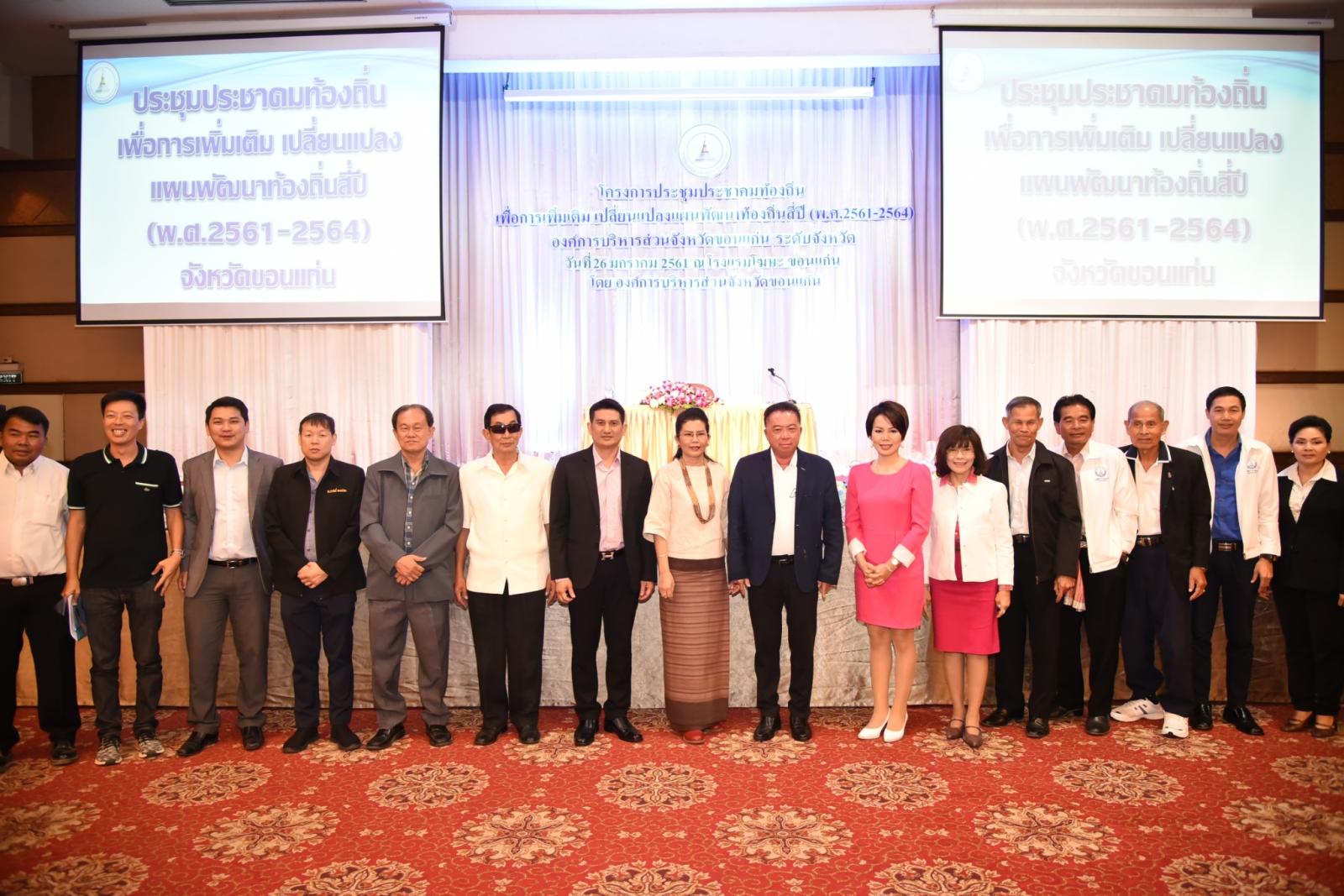 ดร.พงษ์ศักดิ์ ตั้งวานิชกพงษ์ นายกองค์การบริหารส่วนจังหวัดขอนแก่น เป็นประธานเปิดโครงการประชุมประชาคมท้องถิ่นเพื่อการเพิ่มเติม เปลี่ยนแปลงแผนพัฒนาท้องถิ่นสี่ปี (พ.ศ.2561-2564) องค์การบริหารส่วนจังหวัดขอนแก่น ระดับจังหวัด โดยมี นายสิทธิกุล ภูคำวงศ์ รองนายกองค์การบริหารส่วนจังหวัดขอนแก่น สมาชิกสภาองค์การบริหารส่วนจังหวัดขอนแก่น คณะผู้บริหาร ข้าราชการ อบจ.ขอนแก่น เข้าร่วมในพิธี ณ โรงแรมโฆษะขอนแก่น เมื่อ 26 มกราคม 2561