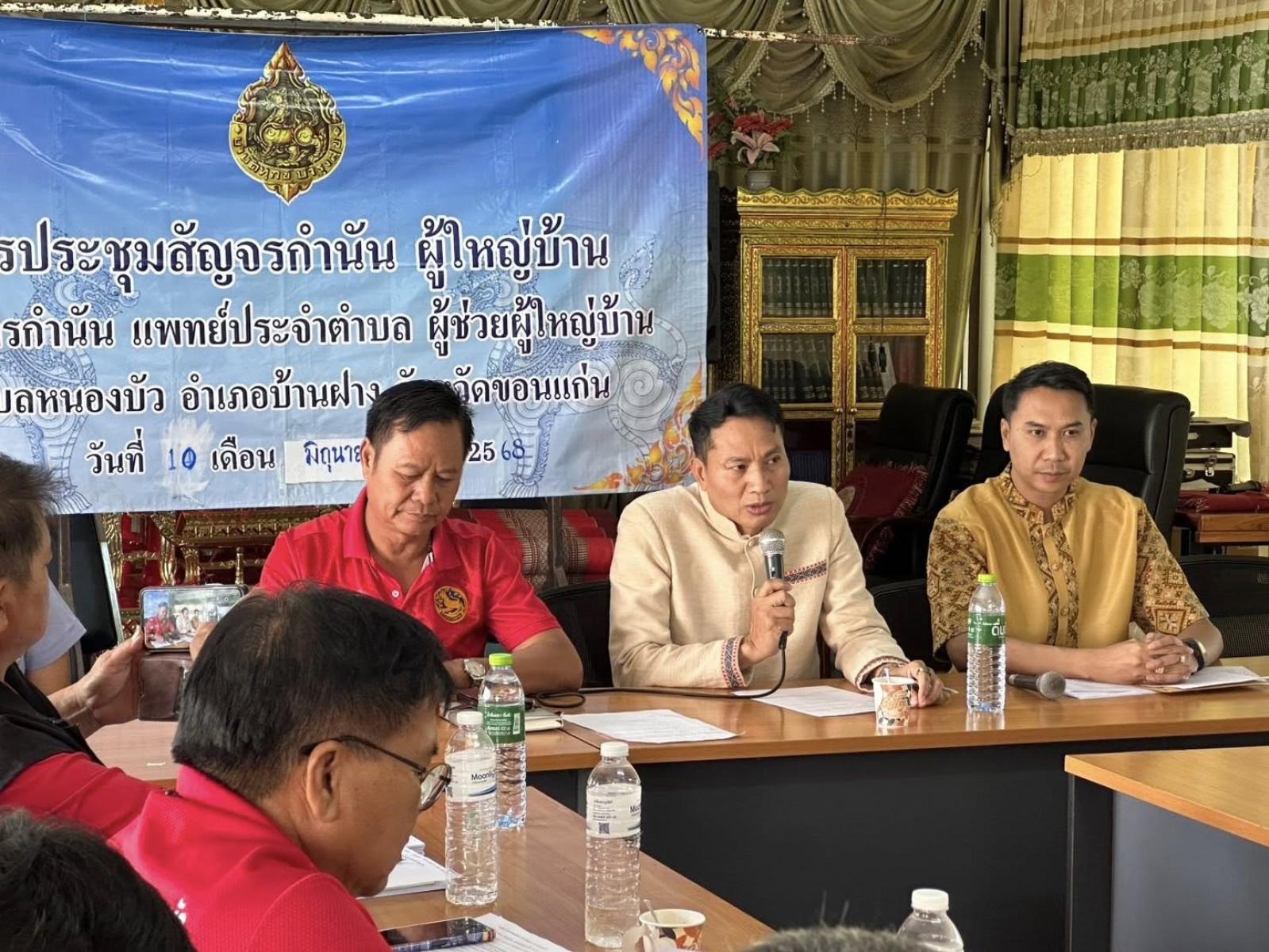 ประชุมกำนัน ผู้ใหญ่บ้าน แพทย์ประจำตำบล สารวัตรกำนันสัญจร และผู้ช่วยผู้ใหญ่บ้าน ตำบลหนองบัว อำเภอบ้านฝาง จังหวัดขอนแก่น