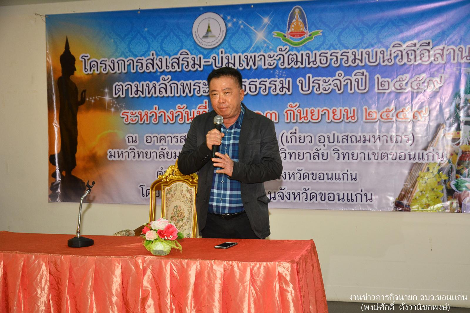 ดร.พงษ์ศักดิ์ ตั้งวานิชกพงษ์ นายกองค์การบริหารส่วนจังหวัดขอนแก่น เป็นประธานเปิดโครงการส่งเสริม – บ่มเพาะวัฒนธรรมบนวิถีอีสานตามหลักพุทธธรรม ประจำปี 2559 เมื่อวันที่ 12 กันยายน 2559 ณ อาคารสมเด็จพุฒาจารย์ (เกี่ยว อุปเสณมหาเถร) มหาวิทยาลัยมหาจุฬาลงกรณราชวิทยาลัย วิทยาเขตขอนแก่น ตำบลโคกสี อำเภอเมือง จังหวัดขอนแก่น โดยมีวัตถุประสงค์เพื่อส่งเสริม อนุรักษ์วัฒนธรรมท้องถิ่นอีสาน และพัฒนาศักยภาพผู้นำทางศาสนพิธีในเขตจังหวัดขอนแก่น จำนวน 200 คน