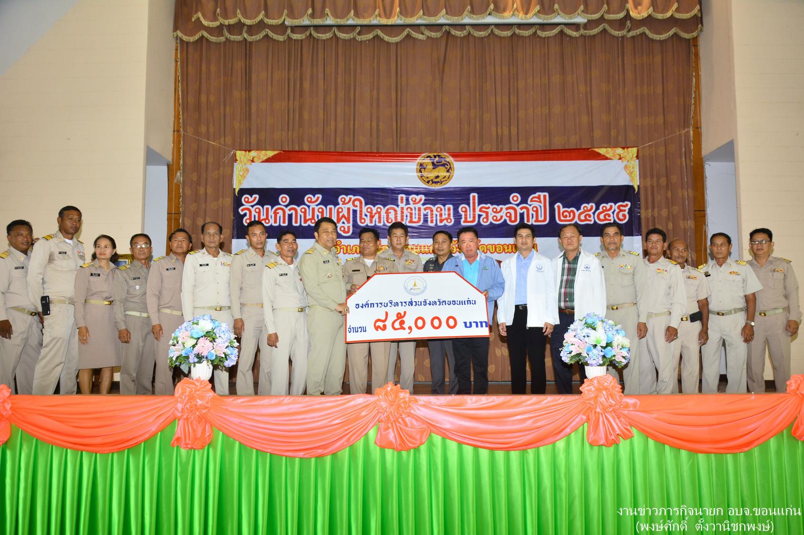 ดร.พงษ์ศักดิ์ ตั้งวานิชกพงษ์ นายกองค์การบริหารส่วนจังหวัดขอนแก่น พบปะกำนัน ผู้ใหญ่บ้าน ในพื้นที่อำเภอเมือง จังหวัดขอนแก่น พร้อมมอบเงินสนับสนุน จำนวน 85,000.- บาท เนื่องในวันกำนัน-ผู้ใหญ่บ้าน อ.เมืองขอนแก่น ประจำปี 2559 โดยมี นายสิทธิกุล ภูคำวงศ์ รองนายก อบจ.ขอนแก่น นายวุฒิพร ศรีมังกรแก้ว ส.อบจ.ขอนแก่น เขต อ.เมือง ร่วมในพิธี นายปิยิน ตลับนาค นายอำเภอเมืองขอนแก่น ให้การต้อนรับ ณ หอประชุมอำเภอเมืองขอนแก่น จังหวัดขอนแก่น เมื่อ 10 สิงหาคม 2559