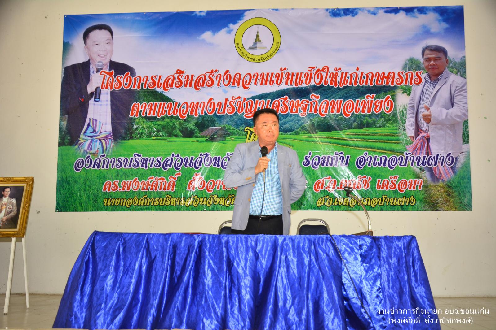 ดร.พงษ์ศักดิ์ ตั้งวานิชกพงษ์ นายกองค์การบริหารส่วนจังหวัดขอนแก่น กล่าวต้อนรับผู้เข้าร่วมกิจกรรมเสริมสร้างการรับรู้, สร้างแรงบันดาลใจ, สร้างความรัก ความสามัคคีของคนในชาติ ตามโครงการสร้างความปรองดองสมานฉันท์ของคนในชาติ ณ ขอนแก่นฮอลล์ ชั้น 5 ศูนย์การค้าเซ็นทรัลพลาซ่า จังหวัดขอนแก่น พร้อมกับ นายสิทธิกุล ภูคำวงศ์ รองนายก อบจ.ขอนแก่น นางพัฒนาวดี จันทร์นวล ปลัด อบจ.ขอนแก่น คณะผู้บริหาร ข้าราชการ อบจ.ขอนแก่น โดยมีพลตรีชาญชัย ว่านเครือ ผู้บัญชาการมณฑลทหารบกที่ 23 เป็นประธานในพิธี เมื่อ 21 กรกฎาคม 2559