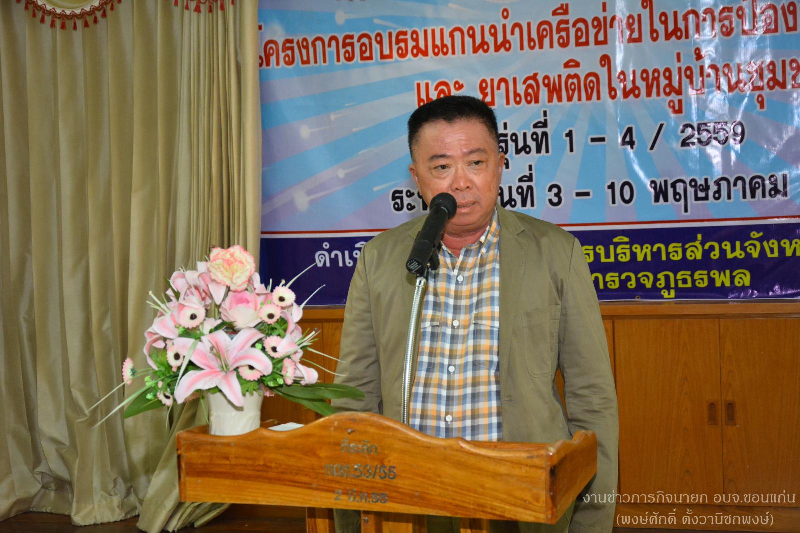 ดร.พงษ์ศักดิ์ ตั้งวานิชกพงษ์ นายกองค์การบริหารส่วนจังหวัดขอนแก่น เป็นประธานเปิดการอบรมโครงการอบรมแกนนำเครือข่ายในการป้องกันอาชญากรรม และยาเสพติดในหมู่บ้านชุมชน รุ่นที่ 1 ประจำปี 2559 ณ สถานีตำรวจภูธรพล อ.พล จ.ขอนแก่น โดยมีนายคงฤทธิ์ อัศวพัฒนากูล ส.อบจ.ขอนแก่น เขต อ.พล เข้าร่วมในพิธี