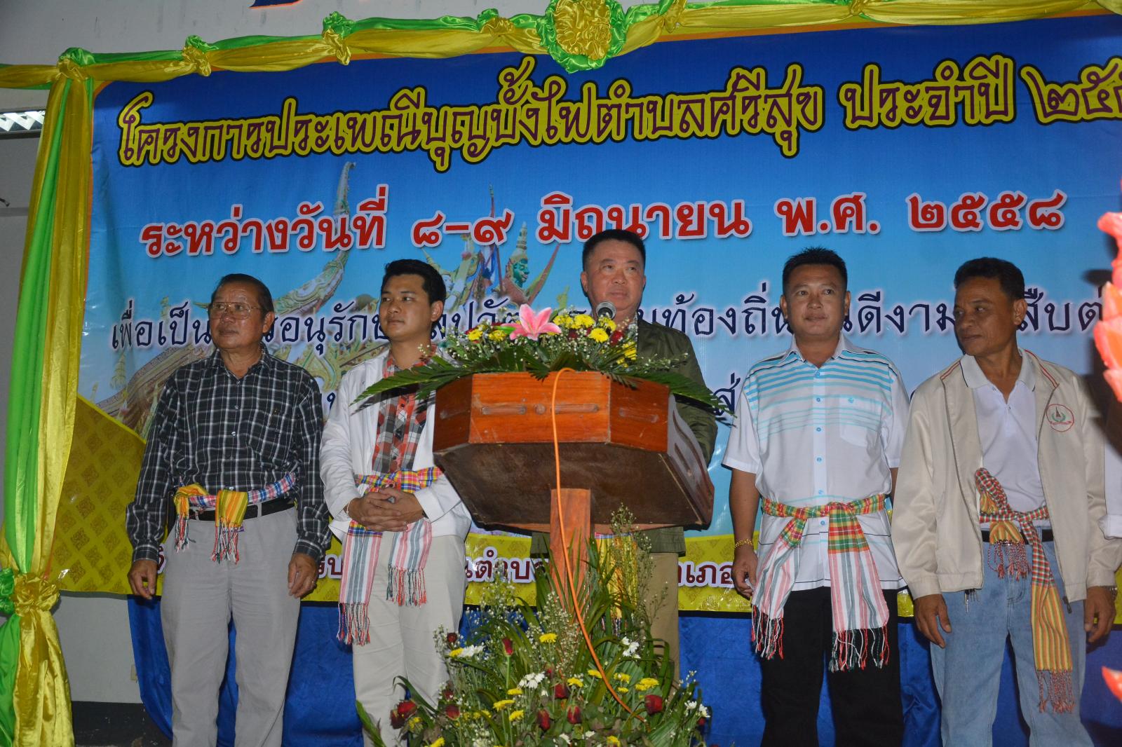 ดร.พงษ์ศักดิ์ ตั้งวานิชกพงษ์ นายกองค์การบริหารส่วนจังหวัดขอนแก่น เป็นประธานเปิดโครงการประเพณีบุญบั้งไฟตำบลศรีสุข ประจำปี 2558 ณ หอประชุมองค์การบริหารส่วนตำบลศรีสุข อำเภอสีชมพู จังหวัดขอนแก่น พร้อมมอบเงินสนับสนุนในการดำเนินงาน จำนวน 20,000.- บาท โดยมี นายวิชัย นนท์ธนากร นายกองค์การบริหารส่วนตำบลศรีสุข เป็นผู้รับมอบ นายจารุพรรณ ภูวสันติ และ นายอาทิตย์ ถนอมทุน สมาชิกสภาองค์การบริหารส่วนจังหวัดขอนแก่น เขต อำเภอสีชมพู ร่วมเป็นสักขีพยาน เมื่อวันที่ 8 มิถุนายน 2558