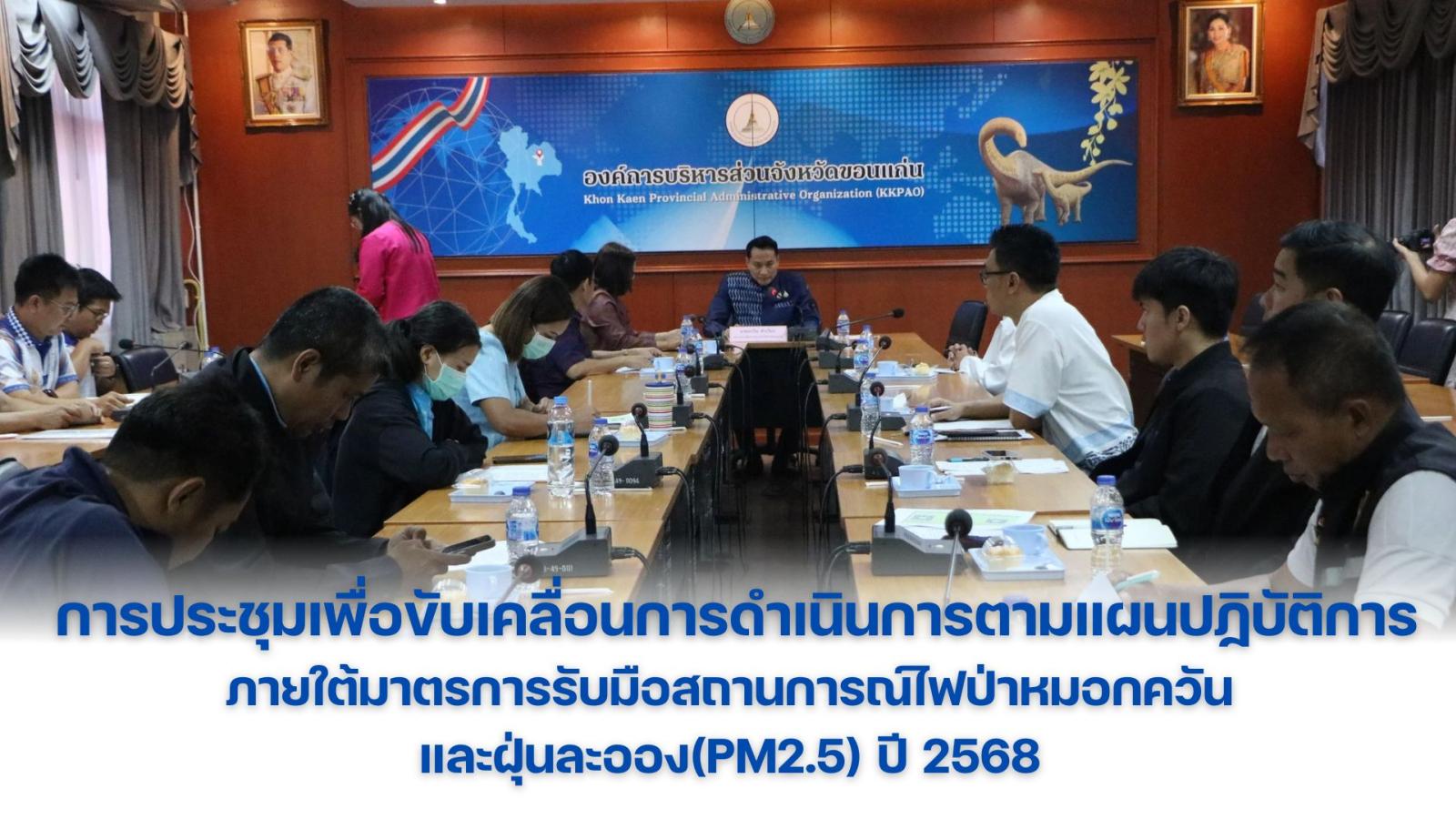 เมื่อวันที่ 25 มีนาคม 2568 เวลา 10.00 น. องค์การบริหารส่วนจังหวัดขอนแก่น นำโดย นายวัฒนา ช่างเหลา นายกองค์การบริหารส่วนจังหวัดขอนแก่น มอบหมายให้นายนาวิน คำเวียง รองนายกองค์การบริหารส่วนจังหวัดขอนแก่น เป็นประธานการประชุมเพื่อขับเคลื่อนการดำเนินการตามแผนปฏิบัติการภายใต้มาตรการรับมือสถานการณ์ไฟป่าหมอกควัน และฝุ่นละออง(PM2.5) ปี 2568 ในโอกาสนี้มีนางสาวศิริวรรณ สุรินทะ หัวหน้าสำนักปลัดองค์การบริหารส่วนจังหวัด นายสมถวิล น้อยวัน ผอ.ส่วนพัฒนาโครงสร้างพื้นฐาน ข้าราชการ พนักงานที่เกี่ยวข้อง ร่วมประชุมหารือ ณ ห้องประชุมองค์การบริหารส่วนจังหวัดขอนแก่น อาคาร 1 ชั้น 2