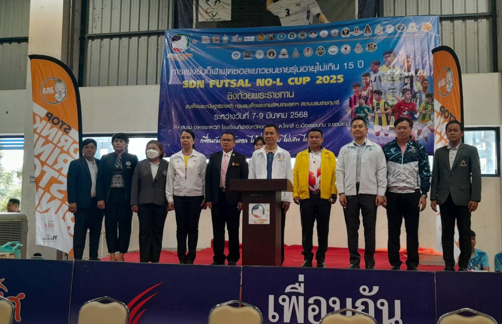 เมื่อวันที่ 9 มีนาคม 2568 เวลา 15.00 น. องค์การบริหารส่วนจังหวัดขอนแก่น นำโดยนายวัฒนา ช่างเหลา นายกองค์การบริหารส่วนจังหวัดขอนแก่น มอบหมายให้ นายอดุลย์ คามดิษฐ์ รองนายกองค์การบริหารส่วนจังหวัดขอนแก่น ชมการแข่งขันคู่ชิงชนะเลิศ และมอบถ้วยรางวัล โครงการSDN FUTSAL NO – L CUP 2025 Inspired by Thai PBS “เพื่อนกัน มันส์โนแอล ไม่ดื่ม ไม่สูบ ไม่เสพ ไม่พนัน” เยาวชนชาย รุ่นอายุไม่เกิน 15 ปี ครั้งที่ 7 จัดโดยสมาคมเครือข่ายองค์กรงดเหล้า และลดปัจจัยเสี่ยงต่อสุขภาพ และร่วมมอบถ้วยรางวัล ให้แก่นักกีฬา ในโอกาสนี้มี สิบเอกเสกสันต์ ชุ่มอภัย ผู้อำนวยการโรงเรียนกีฬาจังหวัดขอนแก่น, นายปรีชา แสนรัตน์ ผู้ประสานงานเครือข่ายงดเหล้าจังหวัดร้อยเอ็ด ,นางกัลยา เลิศล้ำ ผู้ประสานงานเครือข่ายงดเหล้าจังหวัดกาฬสินธุ์ และมีผู้แทนจากหน่วยงานเภาครัฐ ภาคเอกชน เข้าร่วม ณ สนามฟุตซอล อาคารชาตะวิถี โรงเรียนกีฬาจังหวัดขอนแก่น