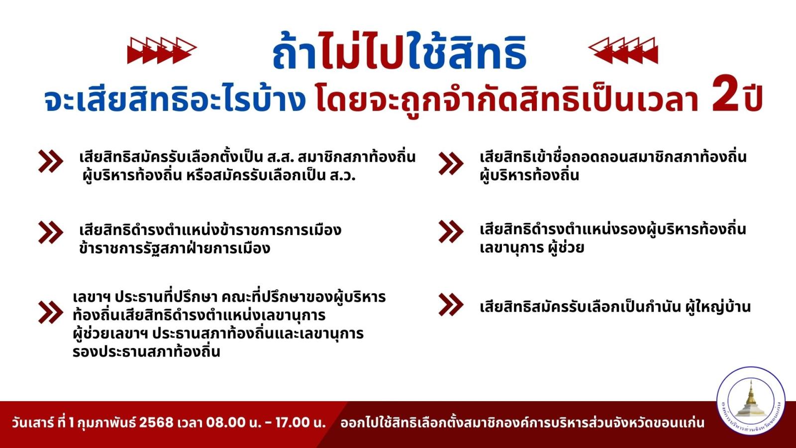 เมื่อวันที่ 10 มกราคม 2568 เวลา 10.00 น. องค์การบริหารส่วนจังหวัดขอนแก่น จัดโครงการฝึกอบรมวิทยากรระดับจังหวัด (ครู ก.) ในการเลือกตั้งสมาชิกสภาองค์การบริหารส่วนจังหวัดขอนแก่น ประจำปีงบประมาณ พ.ศ.2568 โดยมีนายพันธ์เทพ เสาโกศล รองผู้ว่าราชการจังหวัดขอนแก่นในฐานะ ประธานคณะกรรมการการเลือกตั้งนายกองค์การบริหารส่วนจังหวัดขอนแก่น เป็นประธานในพิธีเปิดการฝึกอบรมฯ ในโอกาสนี้มี ว่าที่ร้อยเอกพงเจตน์ พรกุณา ปลัดองค์การบริหารส่วนจังหวัดขอนแก่น ในฐานะผู้อำนวยการการเลือกตั้งประจำองค์การบริหารส่วนจังหวัดขอนแก่น เป็นผู้กล่าวรายงานถึงวัตถุประสงค์ของการอบรมในครั้งนี้ โดยมี นางสาวสิริยากร ภัทร์ธนะวัตน์ รองผู้อำนวยการสำนักงานคณะกรรมการเลือกตั้งประจำจังหวัดขอนแก่น ให้ความรู้ผู้เข้าร่วมการฝึกอบรบฯ โดยมีคณะกรรมการการเลือกตั้งประจำองค์การบริหารส่วนจังงหวัดขอนแก่น คณะกรรมการที่ปรึกษา ที่ปรึกษานายกองค์การบริหารส่วนจังหวัดขอนแก่น ผู้บริหารท้องถิ่น หัวหน้าส่วนราชการองค์การบริหารส่วนจังหวัดขอนแก่น เข้าร่วมเป็นเกียรติในพิธีเปิดในครั้งนี้ ในโอกาสนี้ได้รับเกียรติคณะวิทยากรจากสำนักงานคณะกรรมการการเลือกตั้งประจำจังหวัดขอนแก่น บรรยายให้ความรู้เรื่องเกี่ยวกับโครงสร้างการบริหารจัดการเลือกตั้งท้องถิ่น ประกอบด้วย เจ้าพนักงานผู้ดำเนินการเลือกตั้ง, การปฏิบัติหน้าที่ในการจัดการออกเสียงลงคะแนน, การปฏิบัติหน้าที่ในการดำเนินการนับคะแนนเลือกตั้ง, ข้อพึงระวังในการปฏิบัติหน้าที่, ตัวอย่างแบบพิมพ์ต่าง ๆ ณ โรงแรมเจริญธานี อำเภอเมือง จังหวัดขอนแก่น