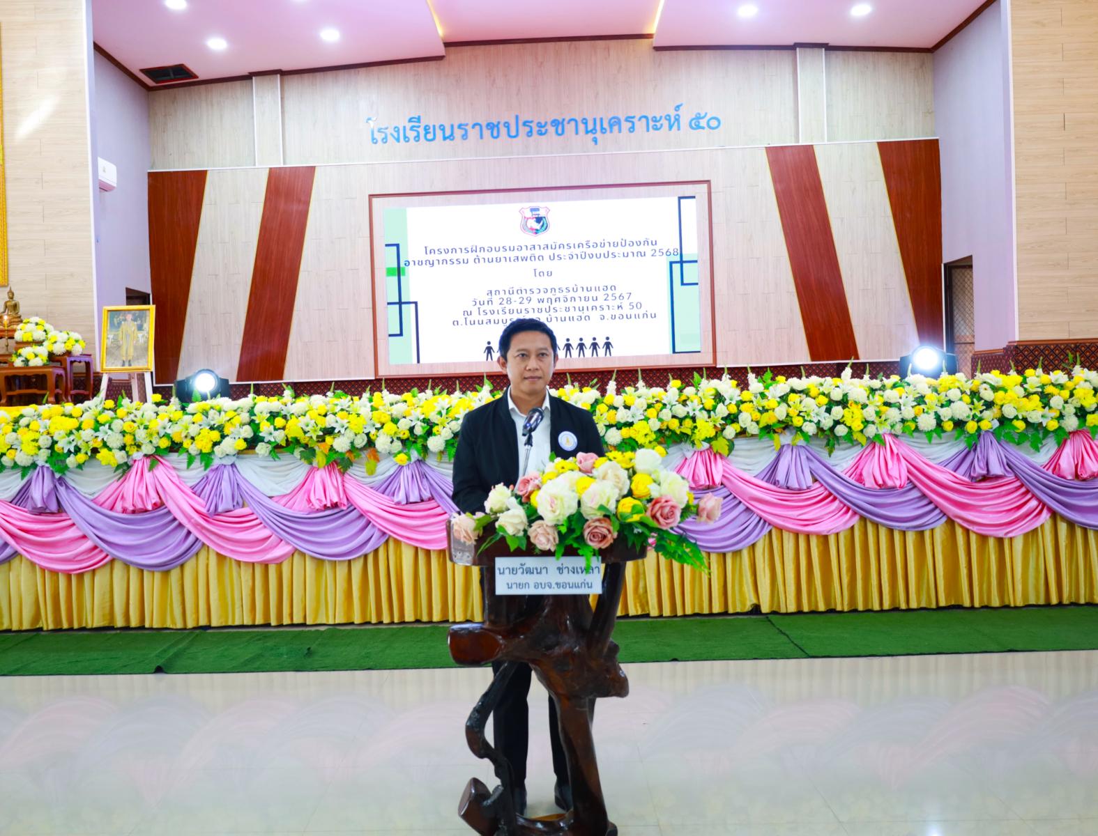 เมื่อวันที่ 29 พฤศจิกายน 2567 เวลา 09.30 นายวัฒนา ช่างเหลา นายกองค์การบริหารส่วนจังหวัดขอนแก่น เป็นประธาน เปิดโครงการอาสาสมัครเครือข่ายป้องกันอาชญากรรมต้านยาเสพติด ประจำปีงบประมาณ 2568 โดยมีพันตำรวจโท ยศวัฒน์ เกียรติกรทวียศ เป็นผู้กล่าวรายงานถึงวัตถุประสงค์ของโครงการดังกล่าว ในโอกาสได้รับเกียรติจาก ดร.ศิริพงษ์ อรุณเดชาชัย คณะทำงานกรรมการผู้ช่วยรัฐมนตรีกระทรวงพาณิชย์ นายอดุลย์ คามดิษฐ์ รองนายกองค์การบริหารส่วนจังหวัดขอนแก่น นางนริศรา อรุณเดชาชัย สมาชิกสภาองค์การบริหารส่วนจังหวัดขอนแก่น เขตอำเภอบ้านแฮด นายปิยพงษ์ ช่างเหลา สมาชิกองค์การบริหารส่วนจังหวัดขอนแก่นอำเภอเมืองเขต 9 ผู้กำกับสถานีตำรวจภูธรบ้านแฮด นายกองค์การบริหารส่วนตำบลโนนสมบูรณ์ ผู้อำนวยการโรงเรียนประชานุเคราะห์ 50 ผู้อำนวยการโรงพยาบาลศูนย์เสริมสุขภาพตำบลโนนสมบูรณ์ ข้าราชการครู ข้าราชการตำรวจ ข้าราชการองค์การบริหารส่วนจังหวัดขอนแก่น ผู้นำท้องถิ่นผู้นำท้องที่เข้าร่วมพิธีเปิดในครั้งนี้ ณ หอประชุมโรงเรียนราชประชานุเคราะห์ 50 อำเภอบ้านแฮด จังหวัดขอนแก่น