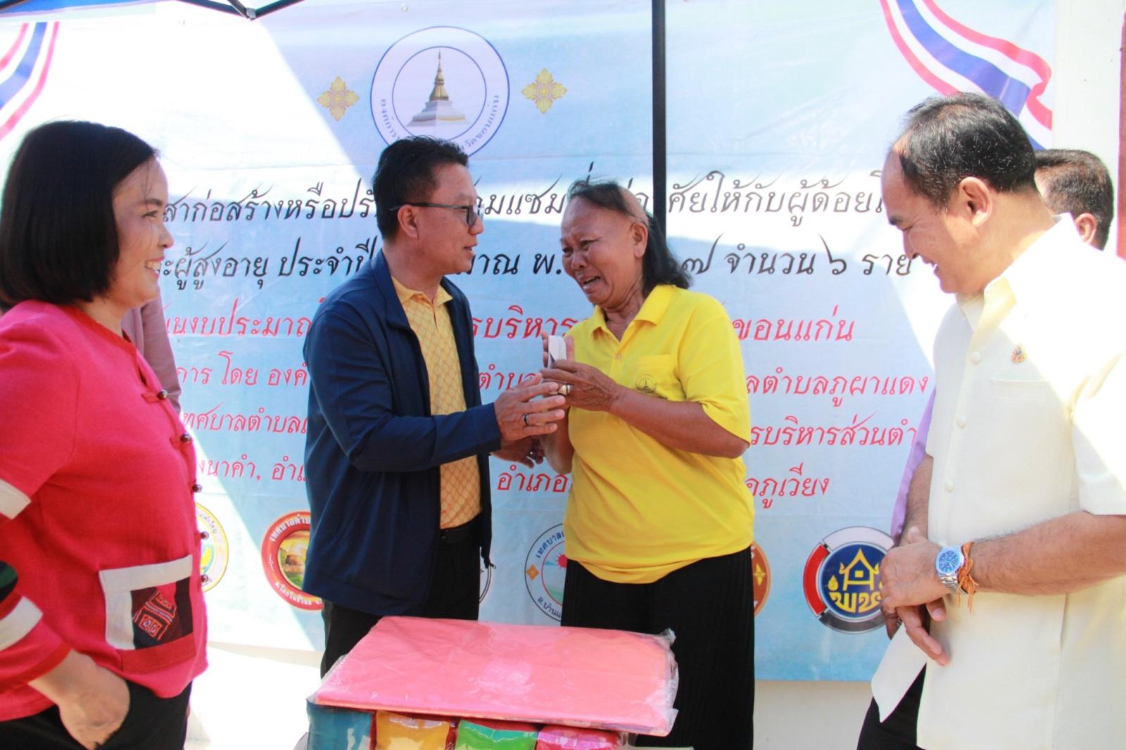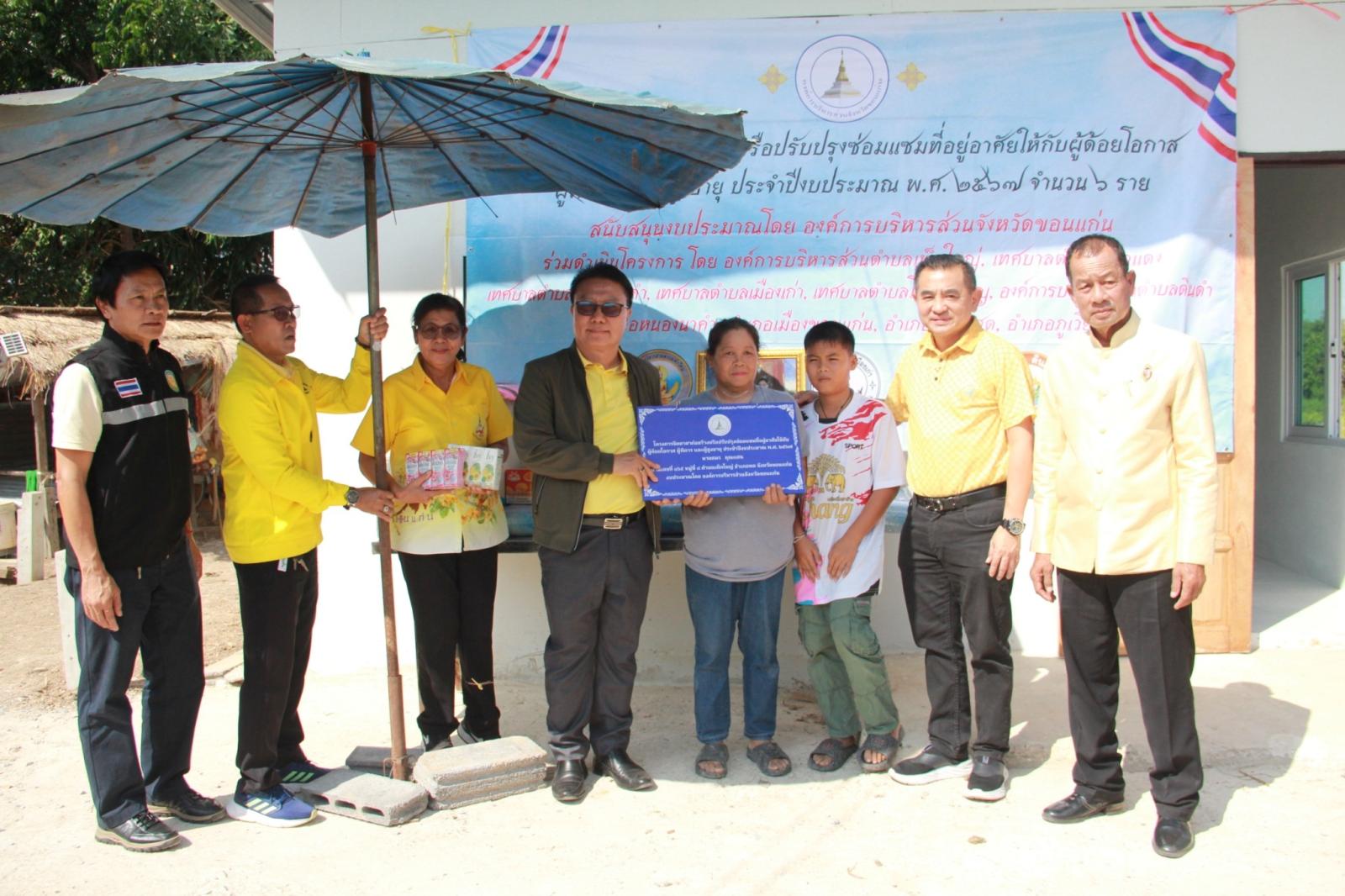 ในวันที่ 12 พฤศจิกายน 2567  เวลา 11.00 น. ว่าที่ร้อยเอกพงเจตน์ พรกุณา ปลัด อบจ.ขอนแก่น ปฏิบัติหน้าที่นายกองค์การบริหารส่วนจังหวัดขอนแก่น เป็นประธานในการส่งมอบบ้านตามโครงการจิตอาสาก่อสร้างหรือปรับปรุงซ่อมแซมที่อยู่อาศัยให้กับผู้ด้อยโอกาส ผู้พิการ และผู้สูงอายุ ประจำปีงบประมาณ พ.ศ.2567 ราย นางสมบูรณ์ พลโคตร อายุ 65 ปี บ้านเลขที่ 39 หมู่ที่ 1 ตำบลบ้านโคก อำเภอหนองนาคำ จังหวัดขอนแก่น โดยมี นายไพศาล วงษ์ซีวะกุล นายอำเภอหนองนำ, นายพนัส เหลาเวียง นายกเทศมนตรีตำบลหนองนาคำ, นางสาวศิริวรรณ สุรินทะ หัวหน้าสำนักปลัด อบจ., นางทิพานัน นามวิจิตร เลขานุการ อบจ., เจ้าหน้าที่ อบจ.ขอนแก่น,  ผู้ท้องที่ ผู้นำท้องถิ่น เข้าร่วมเป็นเกียรติและร่วมส่งมอบบ้านในครั้งนี้