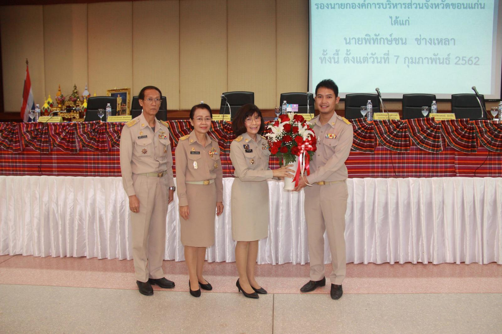 วันที่ 11 กุมภาพันธ์ 2562 เวลา 09.30 น. นางพัฒนาวดี  วิริยปิยะปลัด อบจ.ขอนแก่น พร้อมด้วยนางสาวนงลักษณ์  รัตนจันทร์ นายประสิทธิ์  อุดมธนะธีระ รองปลัด อบจ.ขอนแก่น ผู้บริหารสถานศึกษา หัวหน้าส่วนราชการ และพนักงาน อบจ.ขอนแก่น  ประชุมประจำเดือน ข้าราชการ ลูกจ้างประจำ  และพนักงานองค์การบริหารส่วนจังหวัดขอนแก่น  และมอบดอกไม้แสดงความยินดี กับนายพิทักษ์ชล ช่างเหลา เนื่องในโอกาสขึ้นรับตำแหน่ง รองนายก อบจ.ขอนแก่น ณ  หอประชุมองค์การบริหารส่วนจังหวัดขอนแก่น