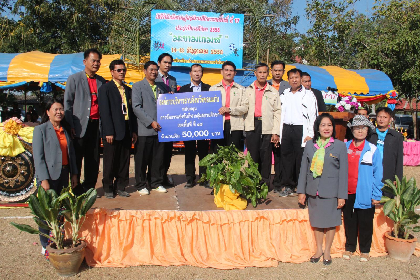 เมื่อวันที่ ๑๘ ธันวาคม ๒๕๕๘ นายก อบจ.ขอนแก่น ดร.พงษ์ศักดิ์ ตั้งวานิชกพงษ์ มอบหมายให้ รองนายก อบจ.ขอนแก่น นายสิทธิกุล ภูคำวงศ์ เป็นประธานในพิธีเปิดการแข่งขันกีฬากลุ่มสถานศึกษา ในเขตพื้นที่ที่ ๑๗ (บ้านโต้น หนองแวง พระบุ) “มะขามเกมส์” โดยมี ผอ.โรงเรียนบ้านหนองแวงหนองจิกโนนตุ่น ประธานกลุ่มสถานศึกษาในเขตพื้นที่ที่ ๑๗ นายสุพจน์ กองทุน เป็นผู้กล่าวรายงาน ในโอกาสนี้ มี ส.อบจ.ขอนแก่น เขต อ.พระยืน นายสมาส นามพิกุล พร้อมด้วย ส.อบจ.ขอนแก่น เขต อ.โคกโพธิ์ไชย นายมีสวัสดิ์ ชมชัยภูมิ ,นายก อบต.หนองแวง นายนิพนธ์ โลหะรัตนากร ทั้งนี้มีผู้บริหารสถานศึกษากลุ่มสถานศึกษาในเขตพื้นที่ที่ ๑๗ ,ผู้นำท้องถิ่น ตลอดจนประชาชนในเขตพื้นที่ตำบลหนองแวง เข้าร่วม เป็นเกียรติในพิธี ณ สนามกีฬาโรงเรียนบ้านหนองแวงหนองจิกโนนตุ่น ต.หนองแวง อ.พระยืน จ.ขอนแก่น