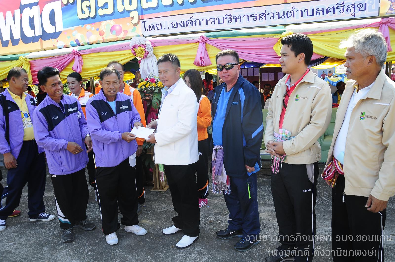 ดร.พงษ์ศักดิ์ ตั้งวานิชกพงษ์ นายกองค์การบริหารส่วนจังหวัดขอนแก่น เป็นประธานในพิธีเปิดการแข่งขันกีฬาต้านยาเสพติด ประจำปีงบประมาณ 2559 “ ศรีสุขเกมส์ ครั้งที่ 17 ” พร้อมด้วย ด.ต.พิชิต ศรีวิไล เลขานุการสภาองค์การบริหารส่วนจังหวัดขอนแก่น นายอาทิตย์ ถนอมทุน และ นายจารุพรรณ ภูวสันติ สมาชิกสภาองค์การบริหารส่วนจังหวัดขอนแก่น เขต อ.สีชมพู โดยมีนายวิชัย นนท์ธนากร นายกองค์การบริหารส่วนตำบลศรีสุข กล่าวรายงาน ณ สนามโรงเรียนบ้านศรีสุข ตำบลศรีสุข อำเภอสีชมพู จังหวัดขอนแก่น เมื่อวันที่ 12 ธันวาคม 2558